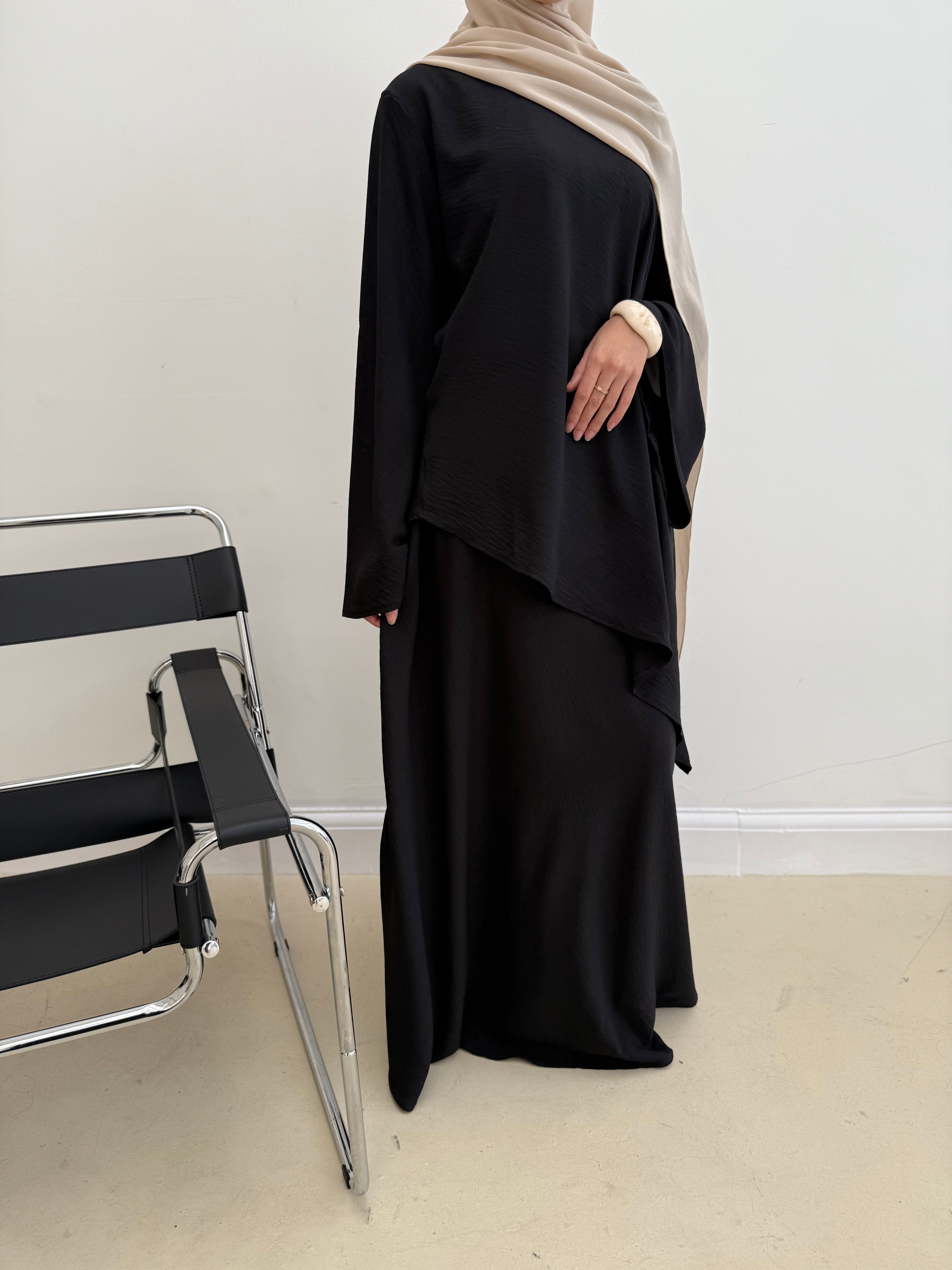 This two-piece linen look skirt set embodies elegance. Wrap yourself in this stunning set, designed to make you feel stunning both inwardly and outwardly!