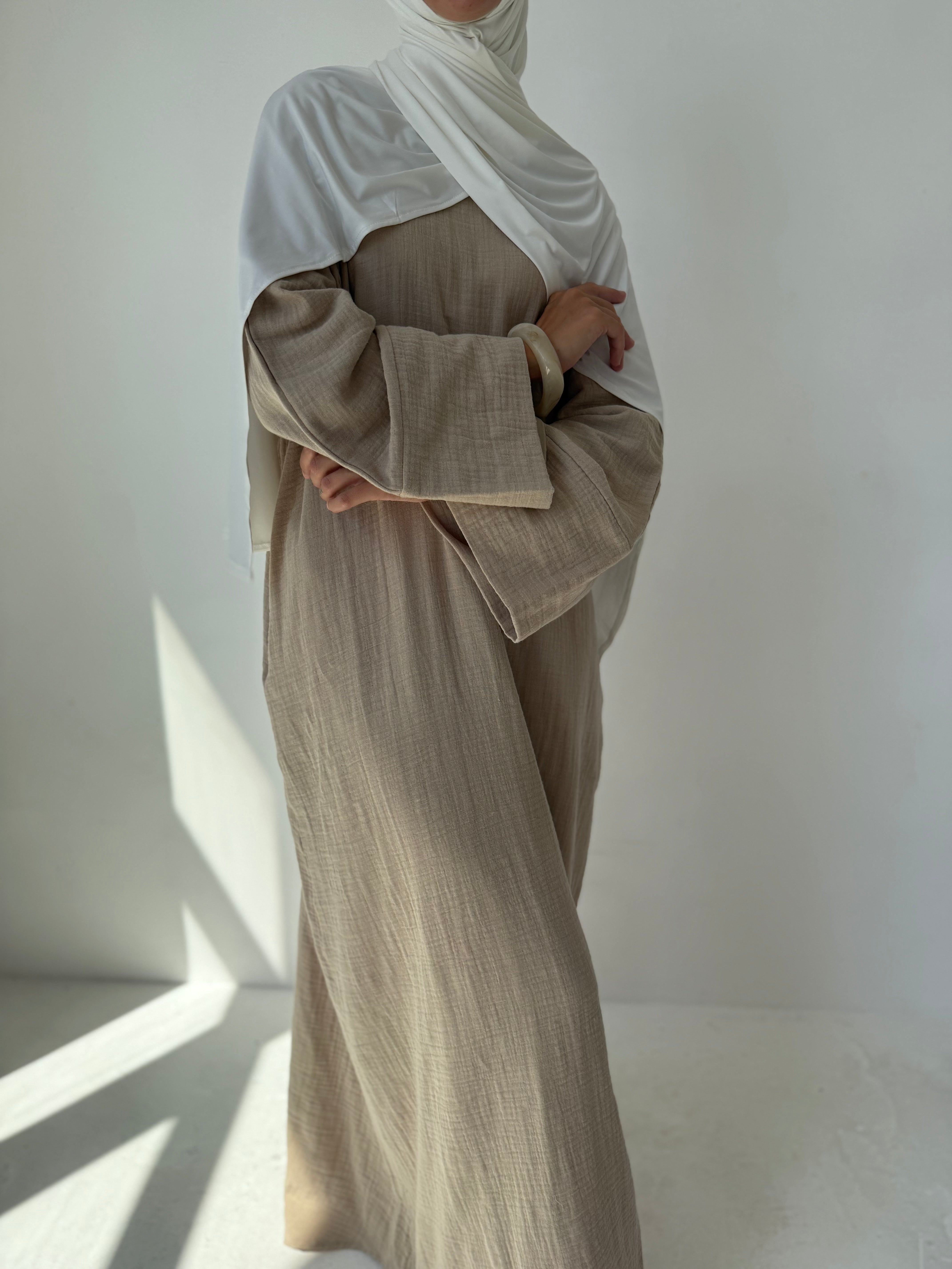 Refresh availabilityThis stunning beige Cotton Kimono is the perfect addition to your Summer wardrobe, with its lightweight breathable fabric and it's stunning Kimono sleeves, this abayah is a must have for every girlie!