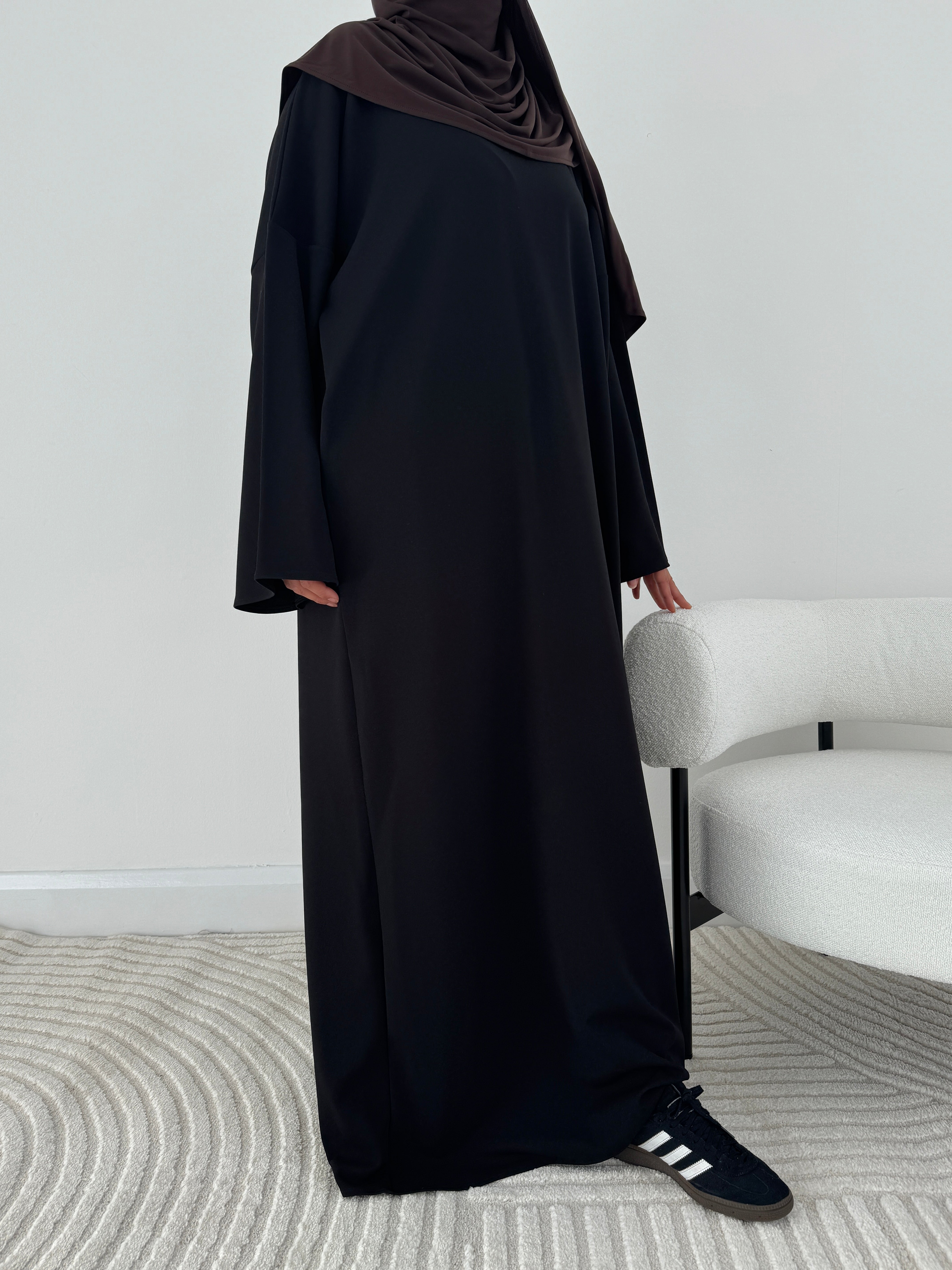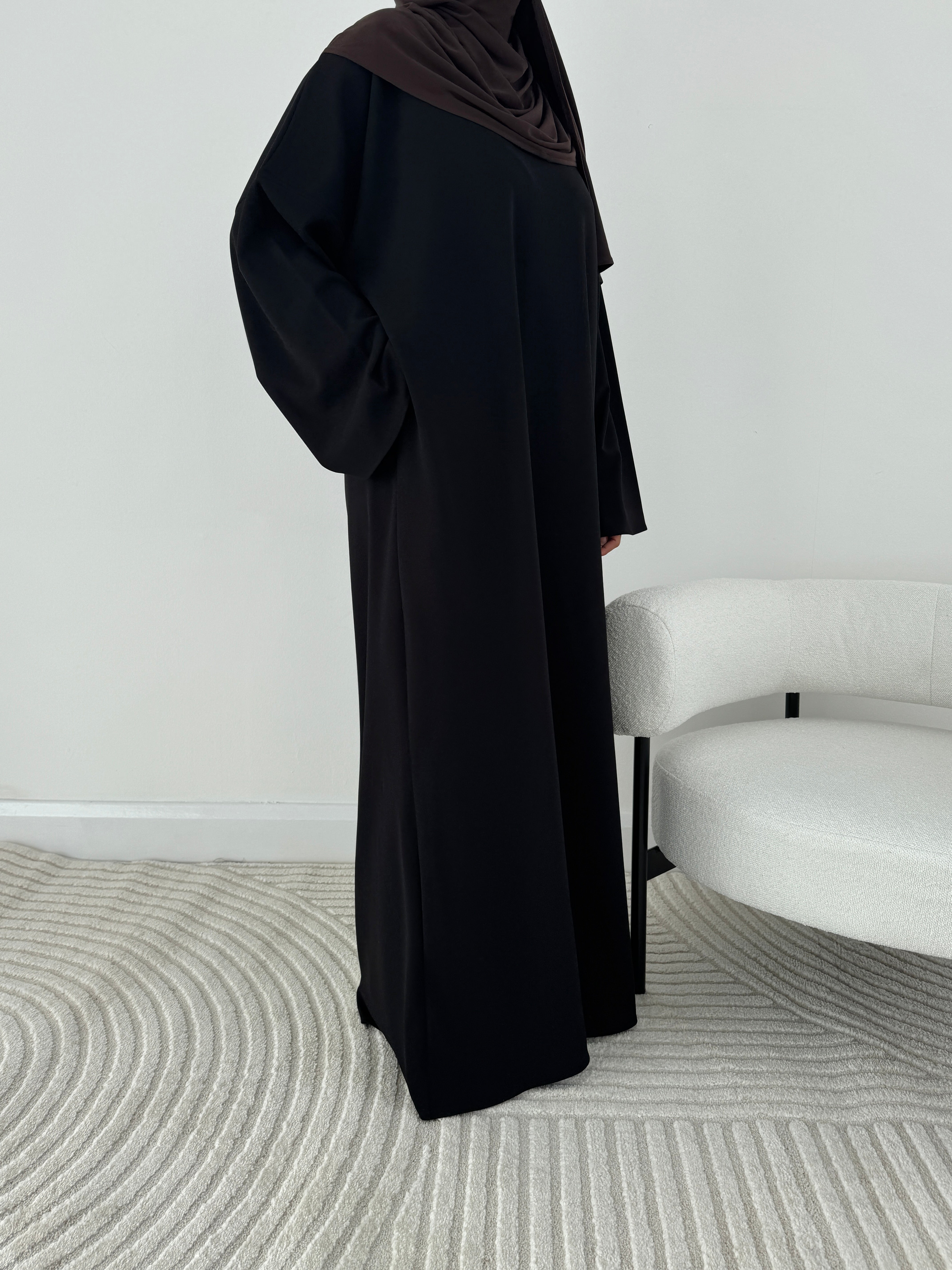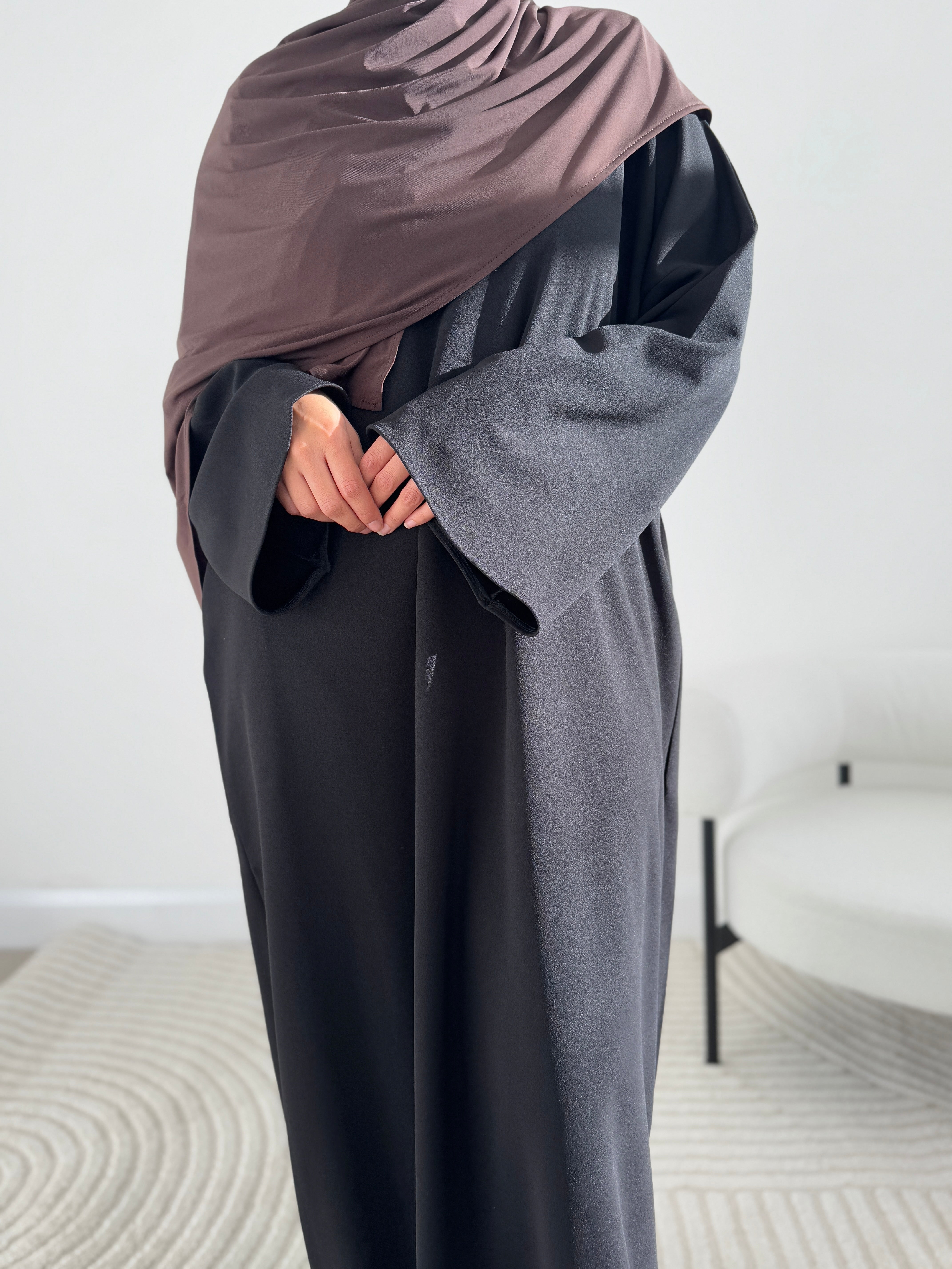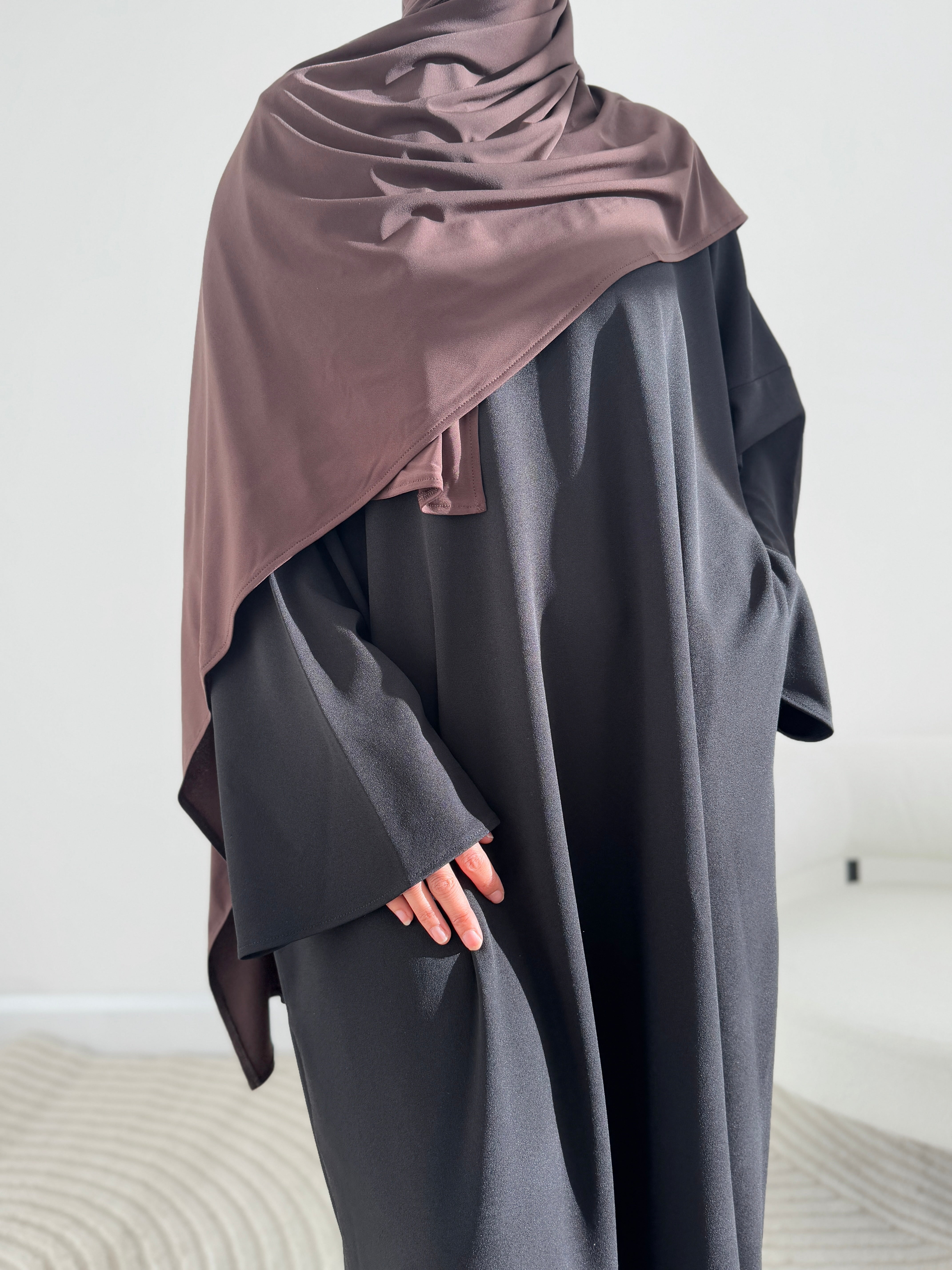 Our Black Jumper abayah is not only stylish, but offers ultimate quality and comfort. This abayah speaks for itself with its beautiful stone shade- a truly aesthetically pleasing shade! Perfect for our studying girlies or for those everyday comfy runs!