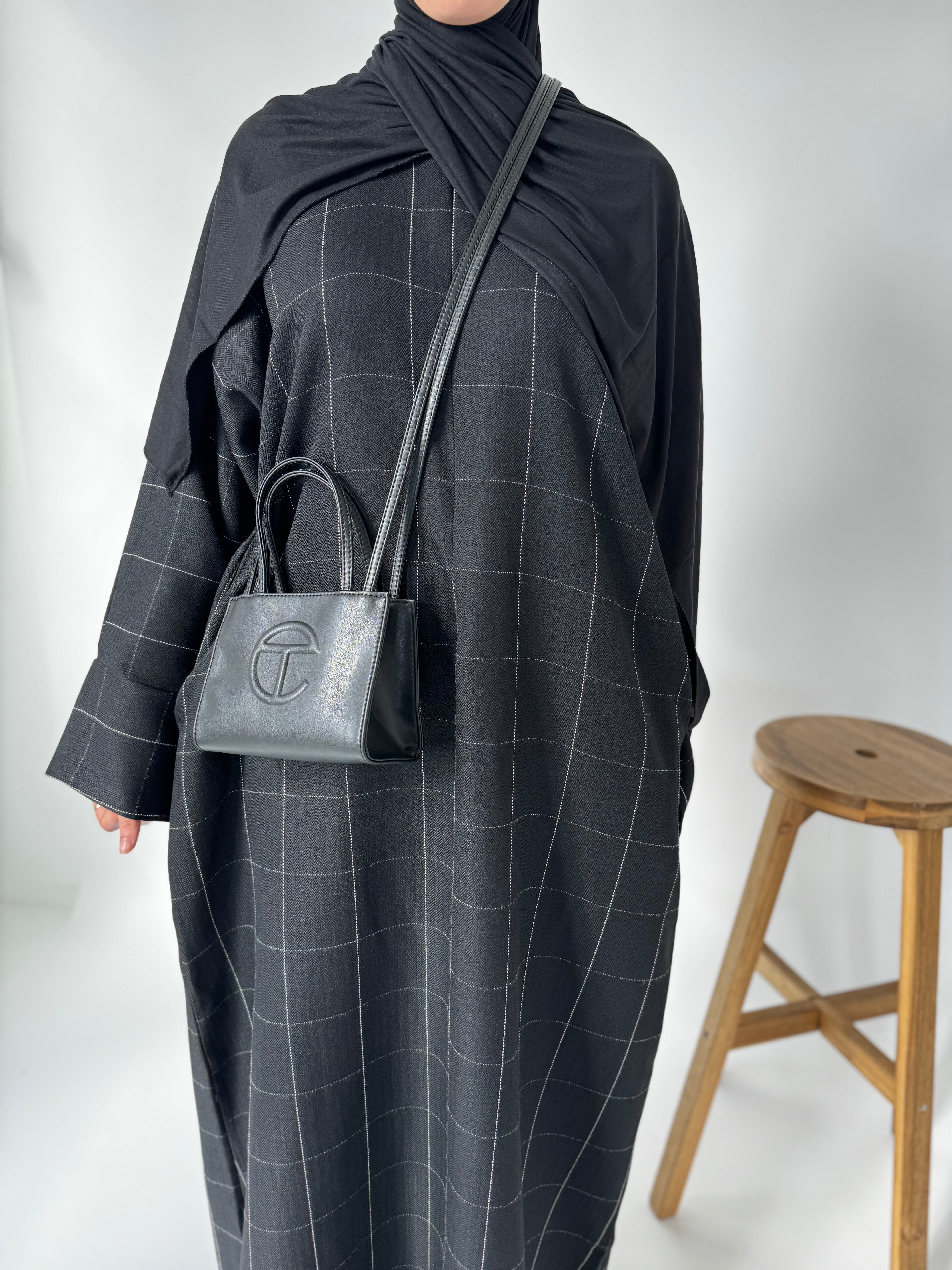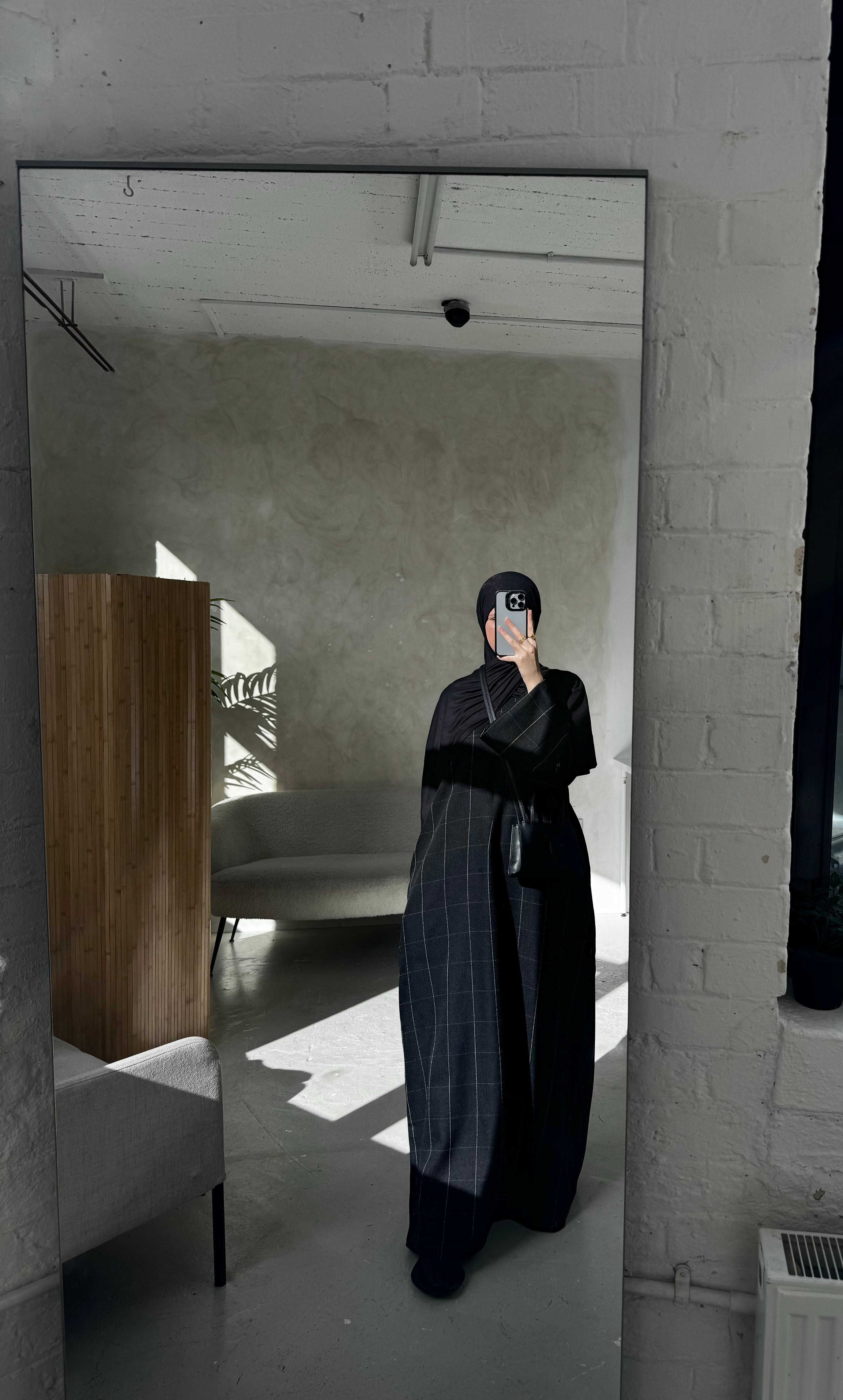 Our new Grid abayah is a beautiful piece, which is not only super warm and comfortable, but also has that effortless look. Allowing you to look the part in comfort. Comes with wide arms, hidden pockets and matching belt.