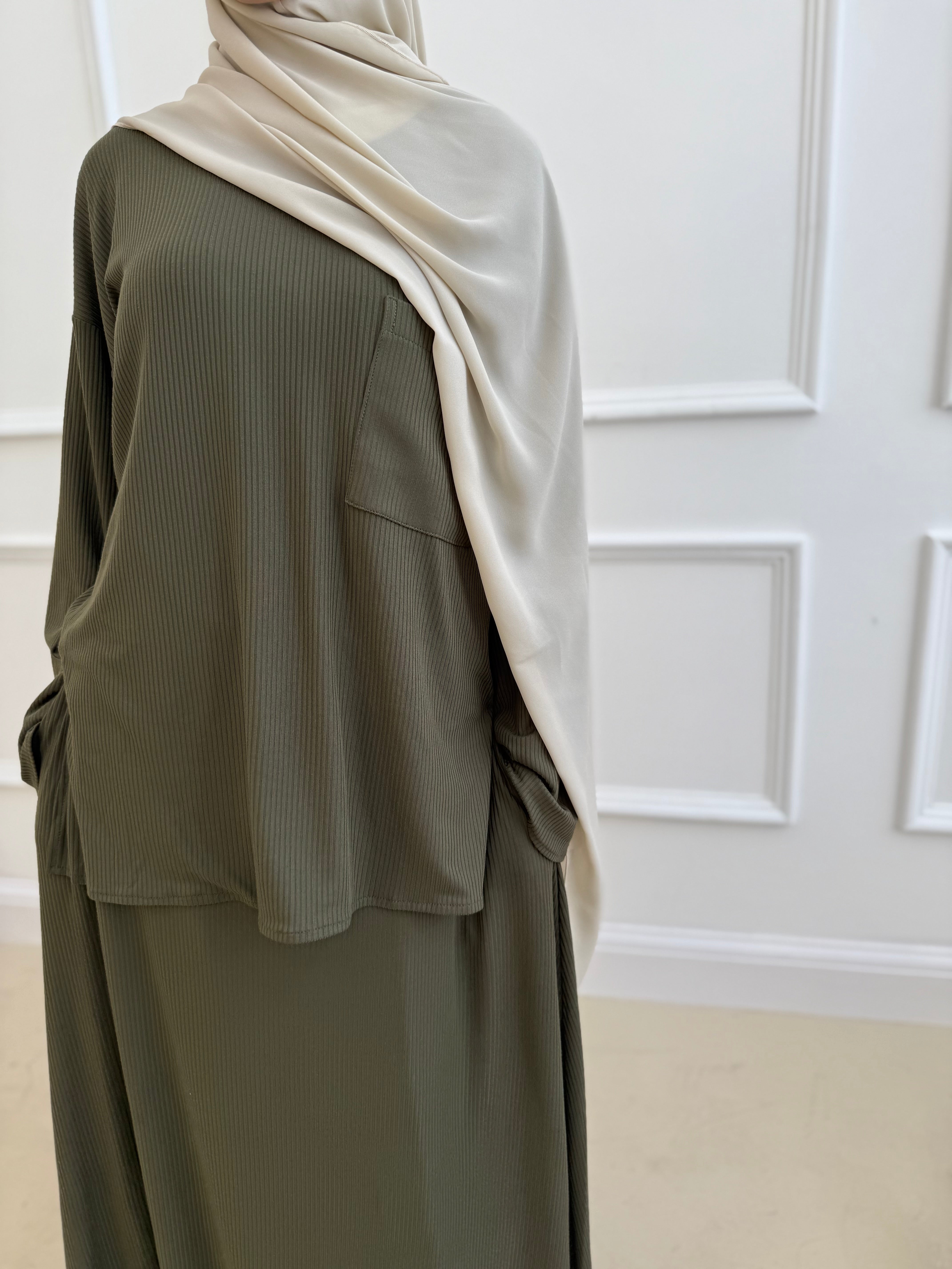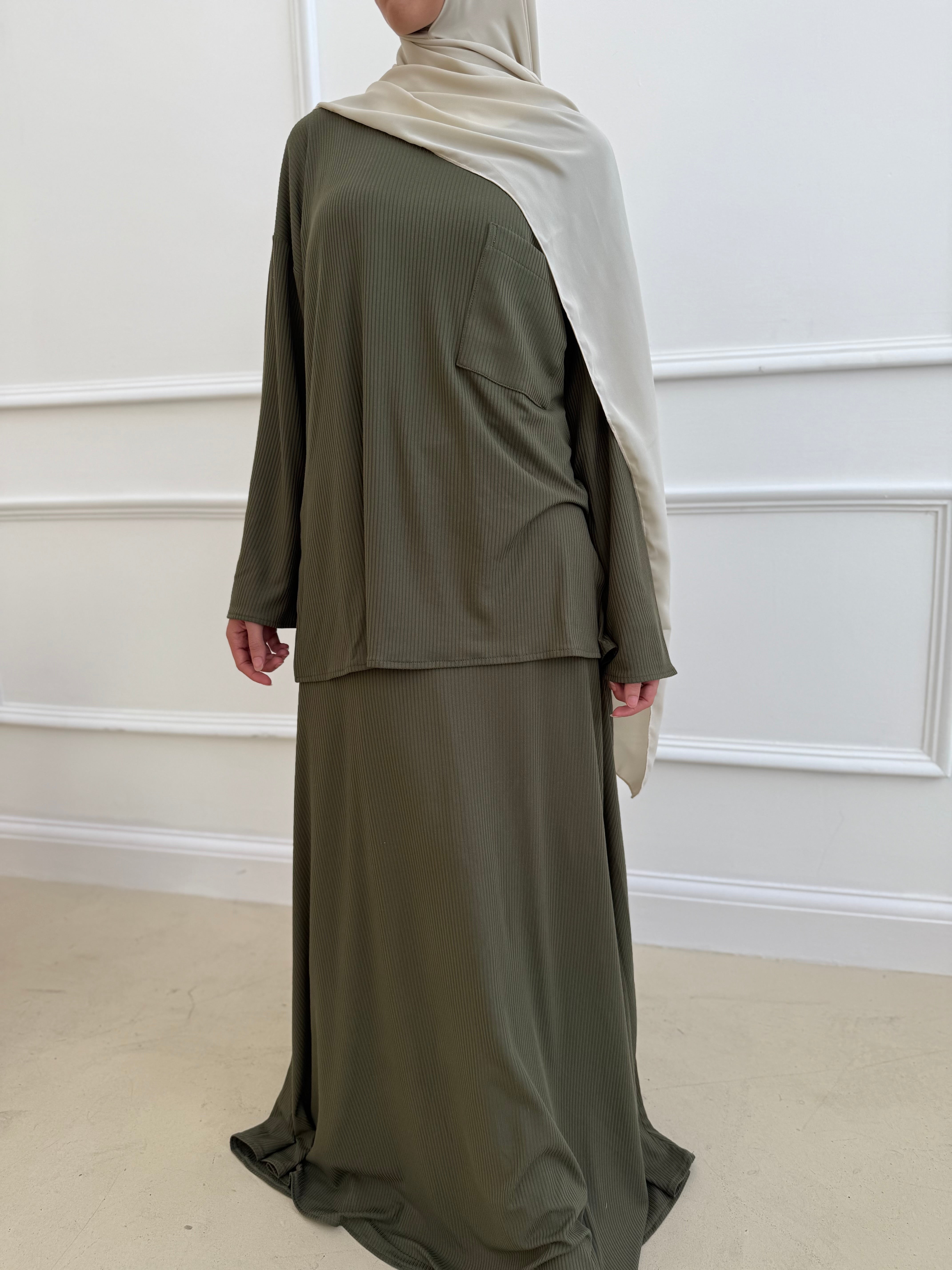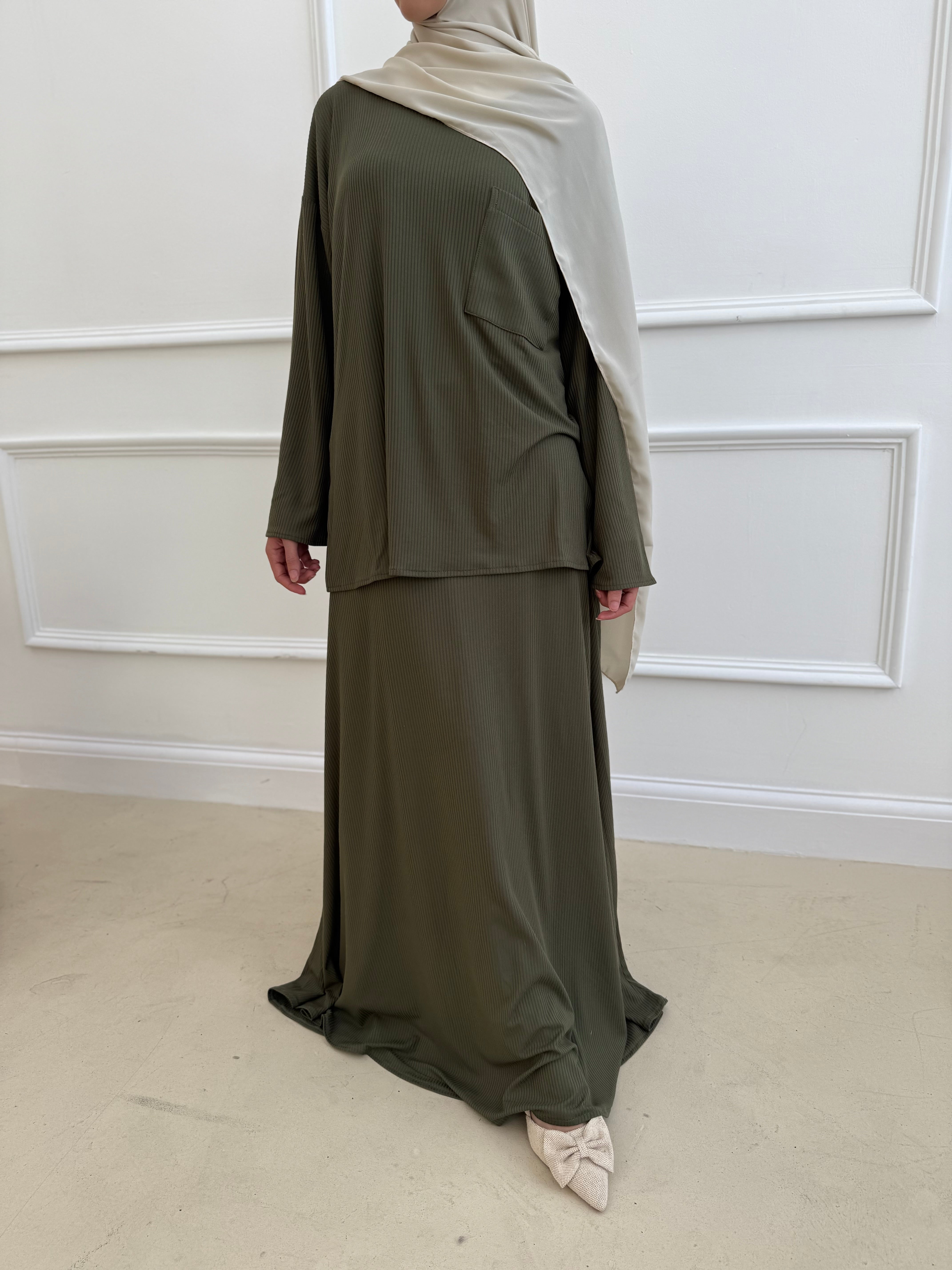 Our new Ribbed co-ord sets come with a loose shirt and a matching full-length skirt with elasticated waist. It comes with draped non-crease jersey fabric, with a stylish cut to wear for any occasion!