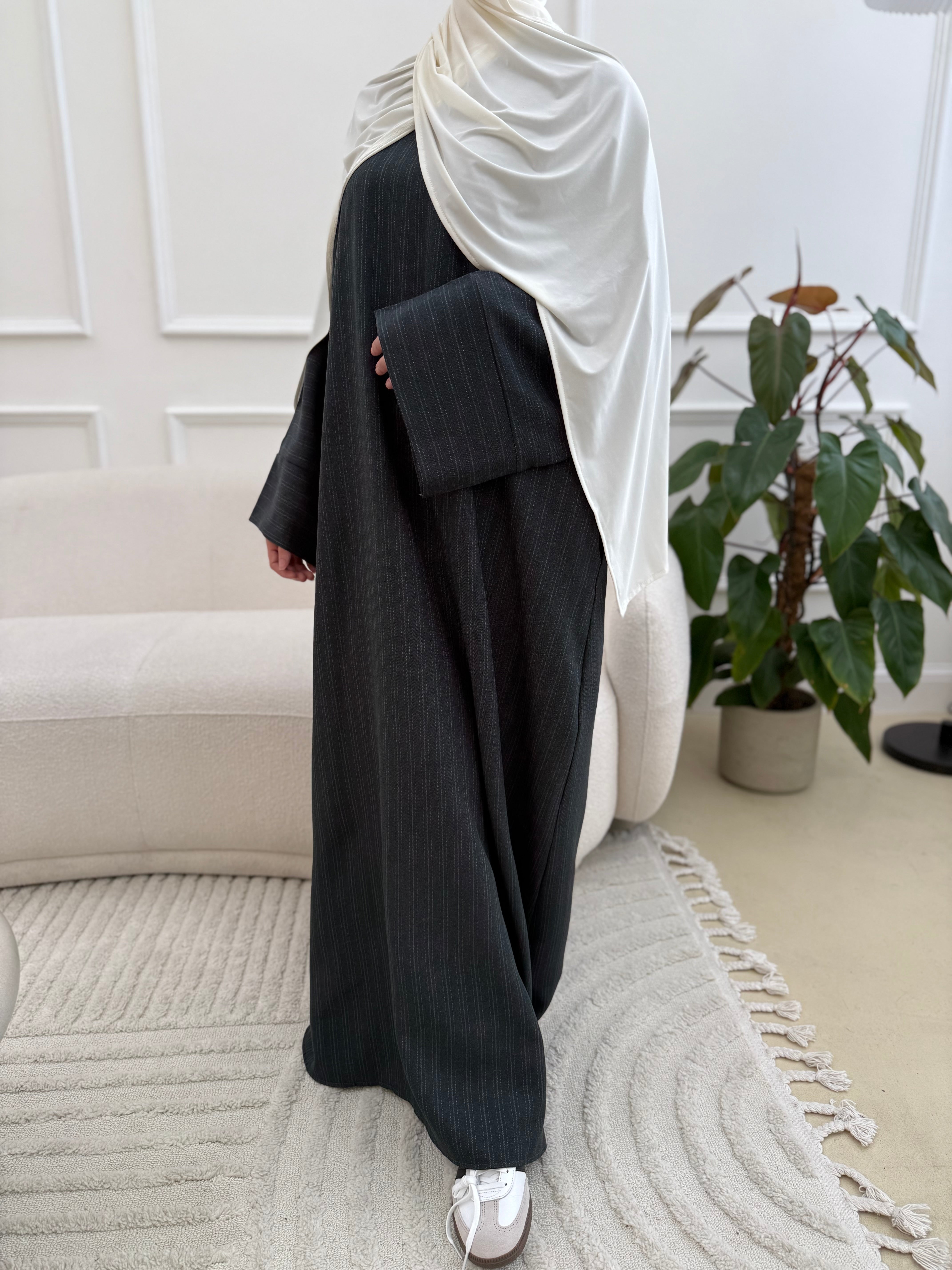 Refresh availabilityThis gorgeous pinstripe abayah is both stylish and smart all combined. Featuring a suiting fabric, this abayah is one not to miss!