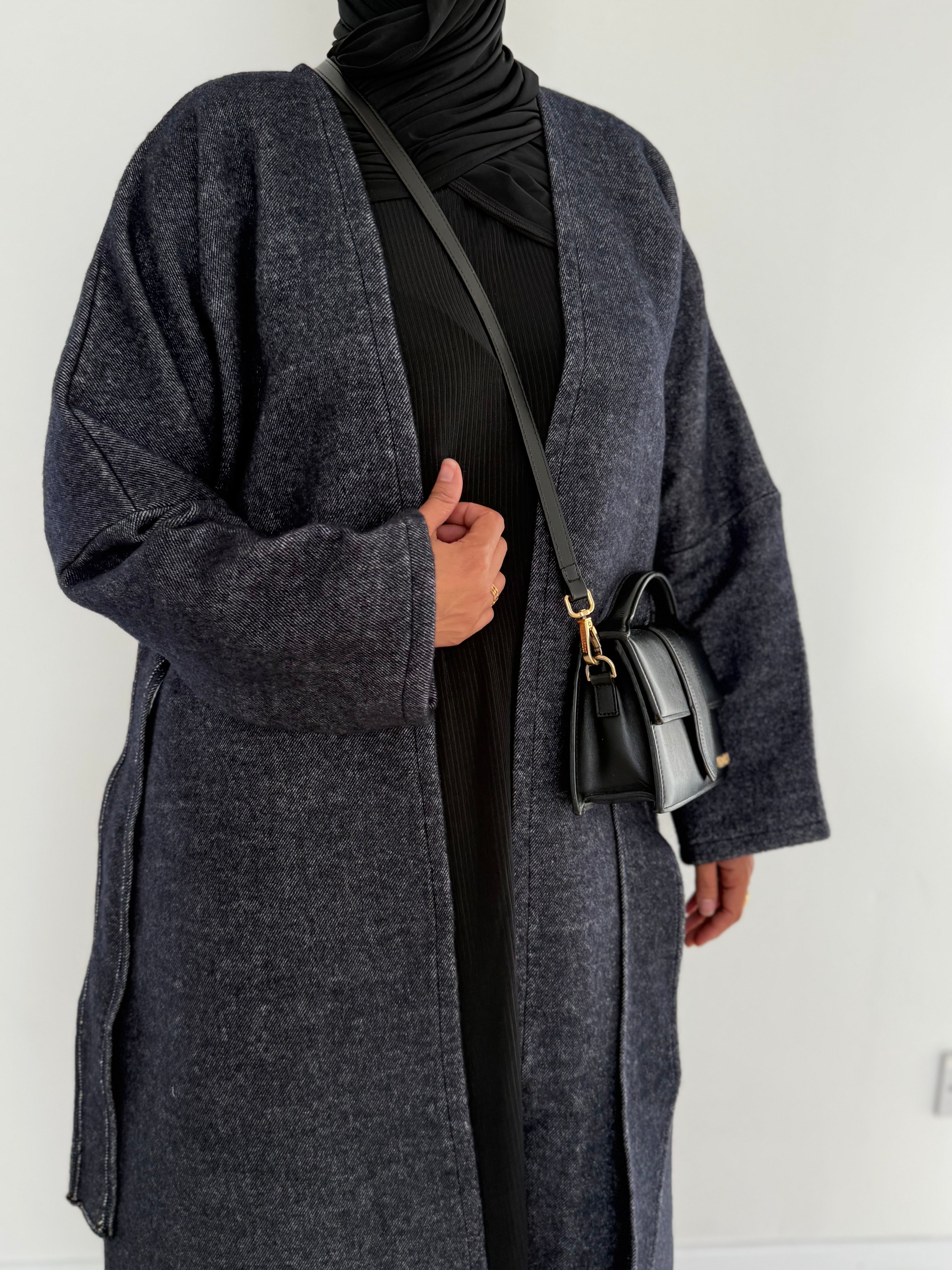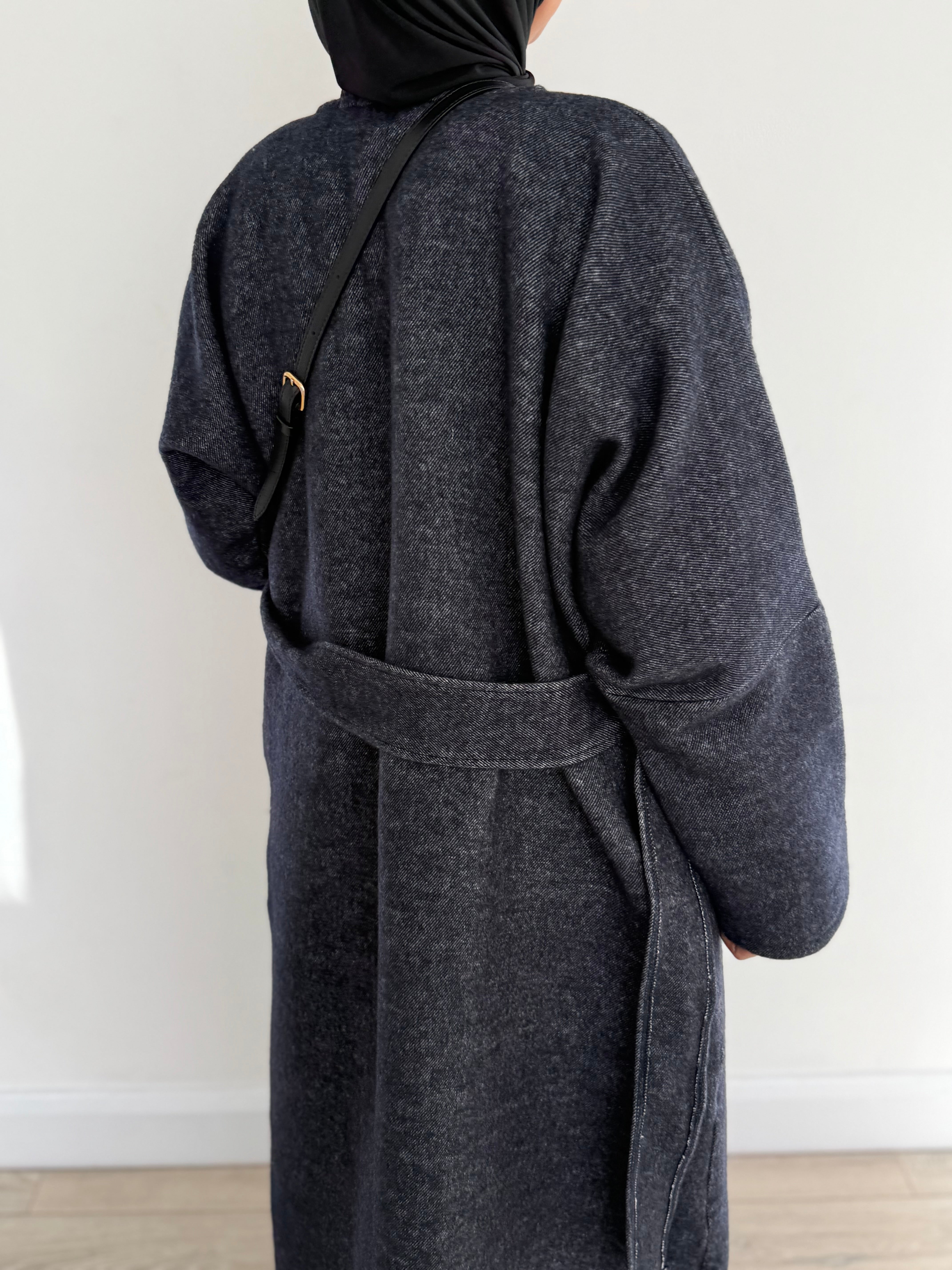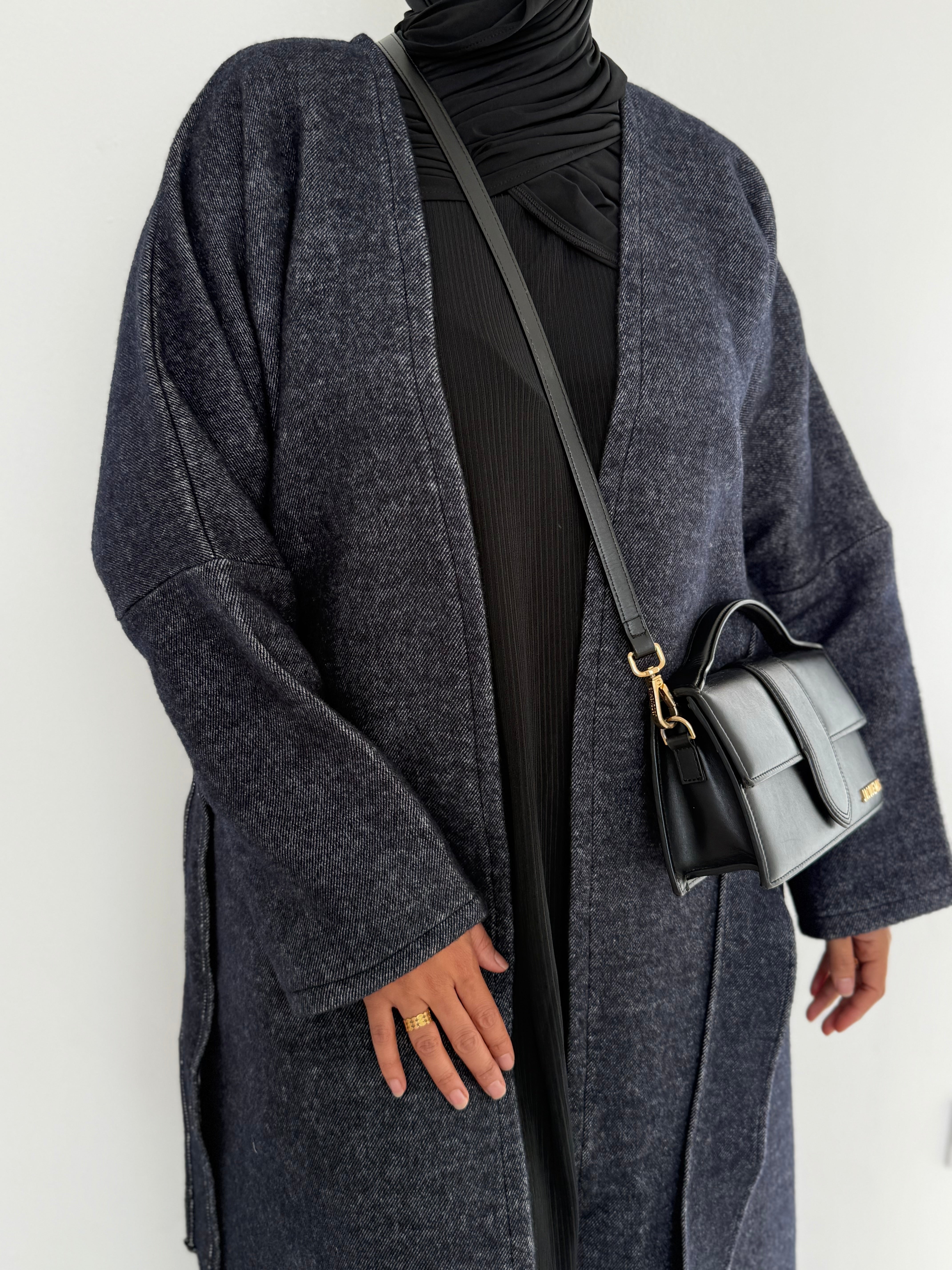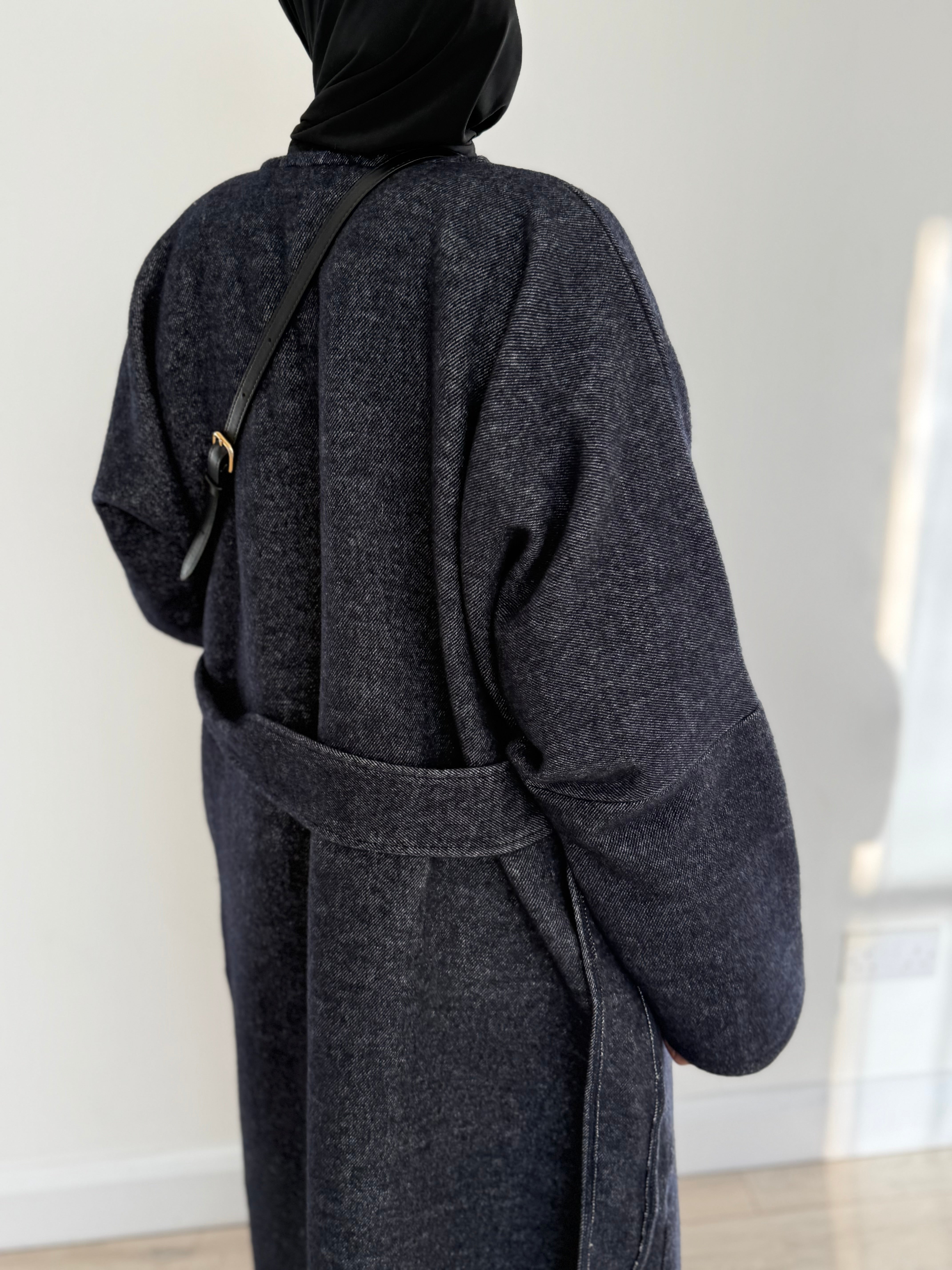 Refresh availabilityThis Wool abayah coat has a denim look finish, which makes it a stylish in trend piece, to ensure you are looking your best and warmest for the colder seasons. Designed to give you warm without compromising style. Made with an oversized fit and belt loops, these Coat abayahs are made for practicality and style!
