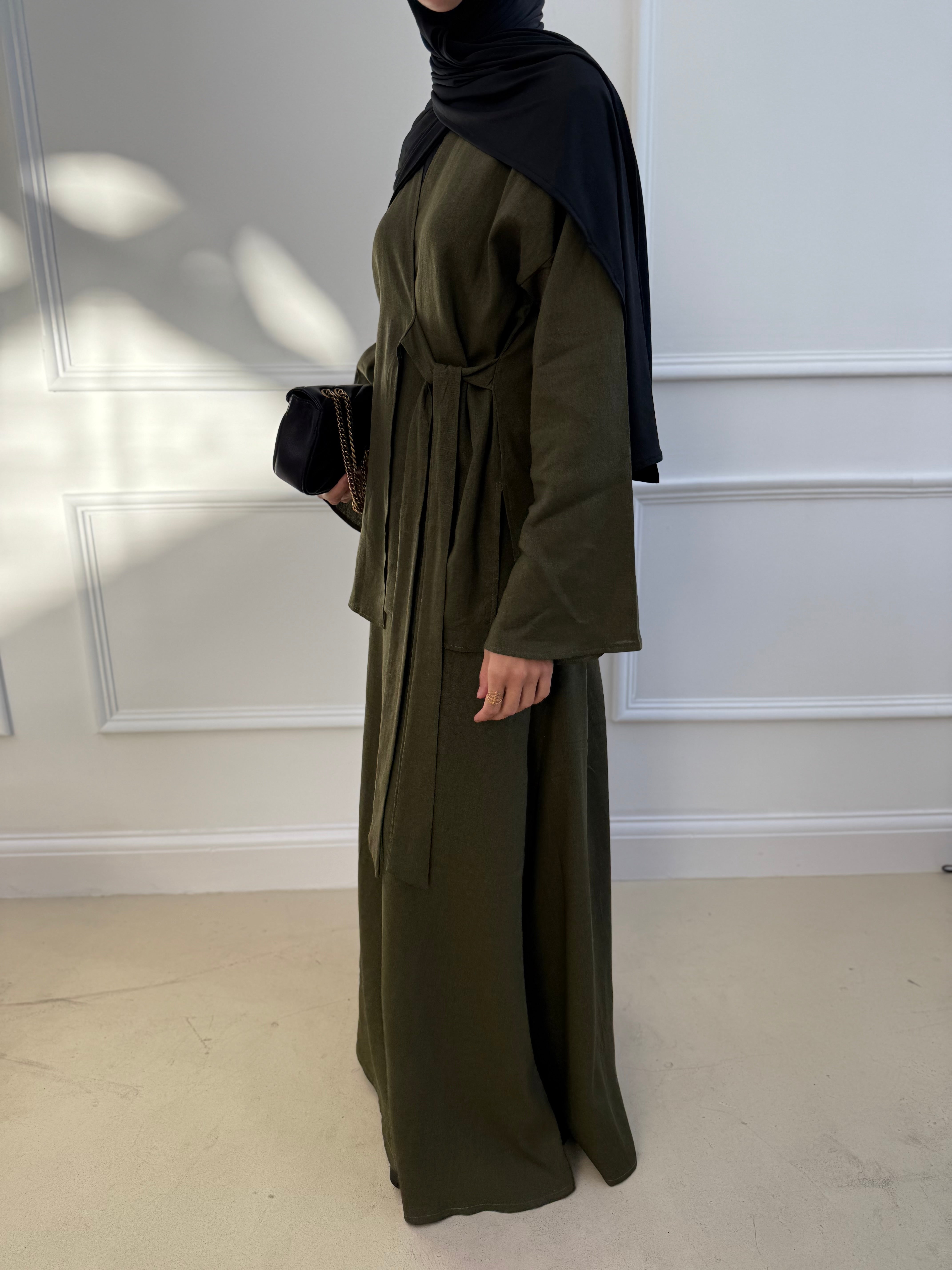 Khaki Linen Wrap Set