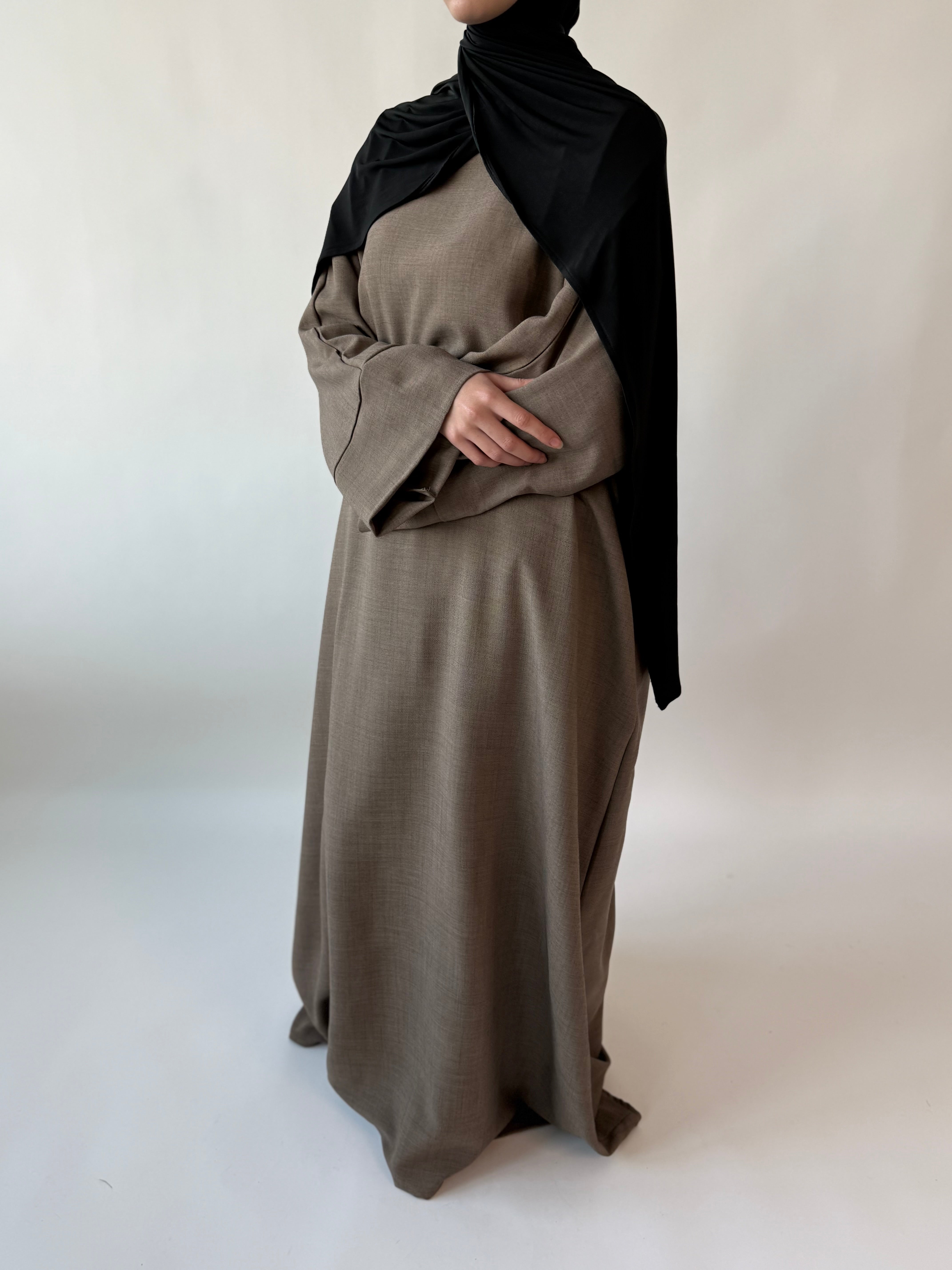 Our NEW Latte textured abayah is the perfect abayah to provide you with comfort and beauty colour for this Winter.