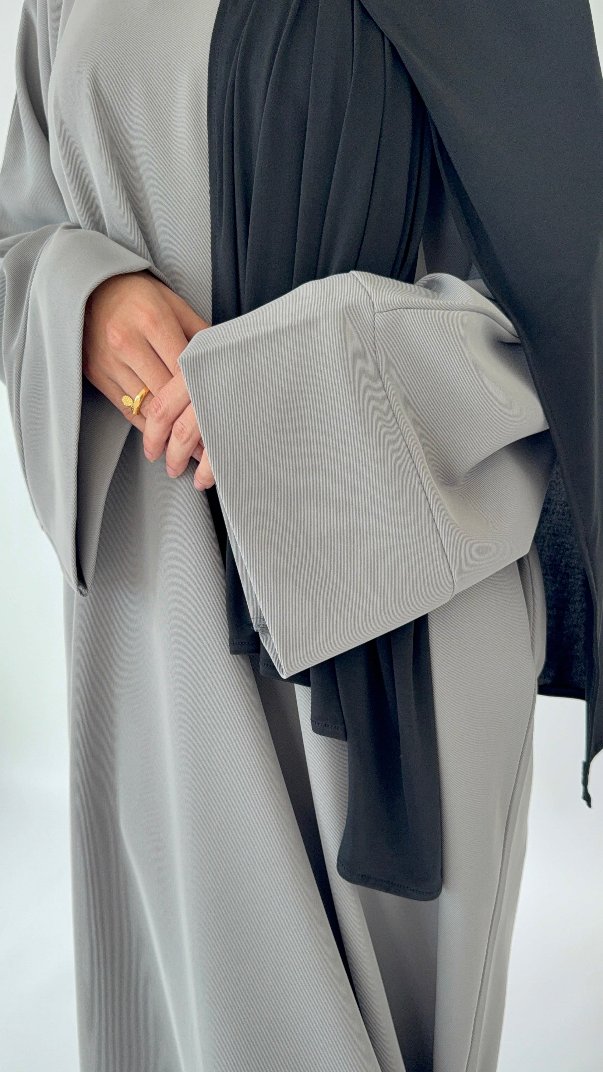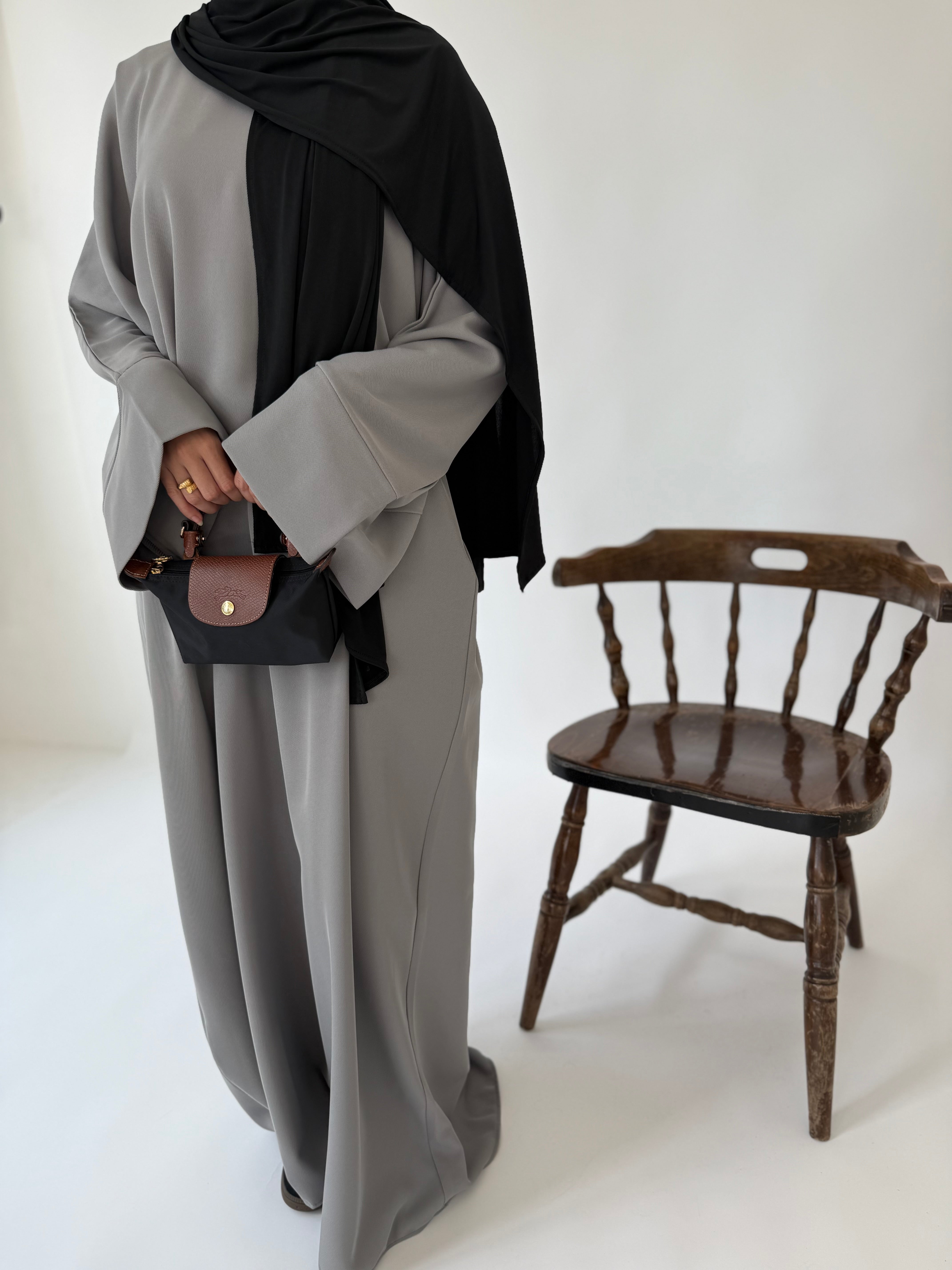 Designed with this seasons perfect shade, this muted grey shade abayah will give you the perfect staple outdoor piece. This abayah can be styled causally and certainly dressing it up when accessorised!