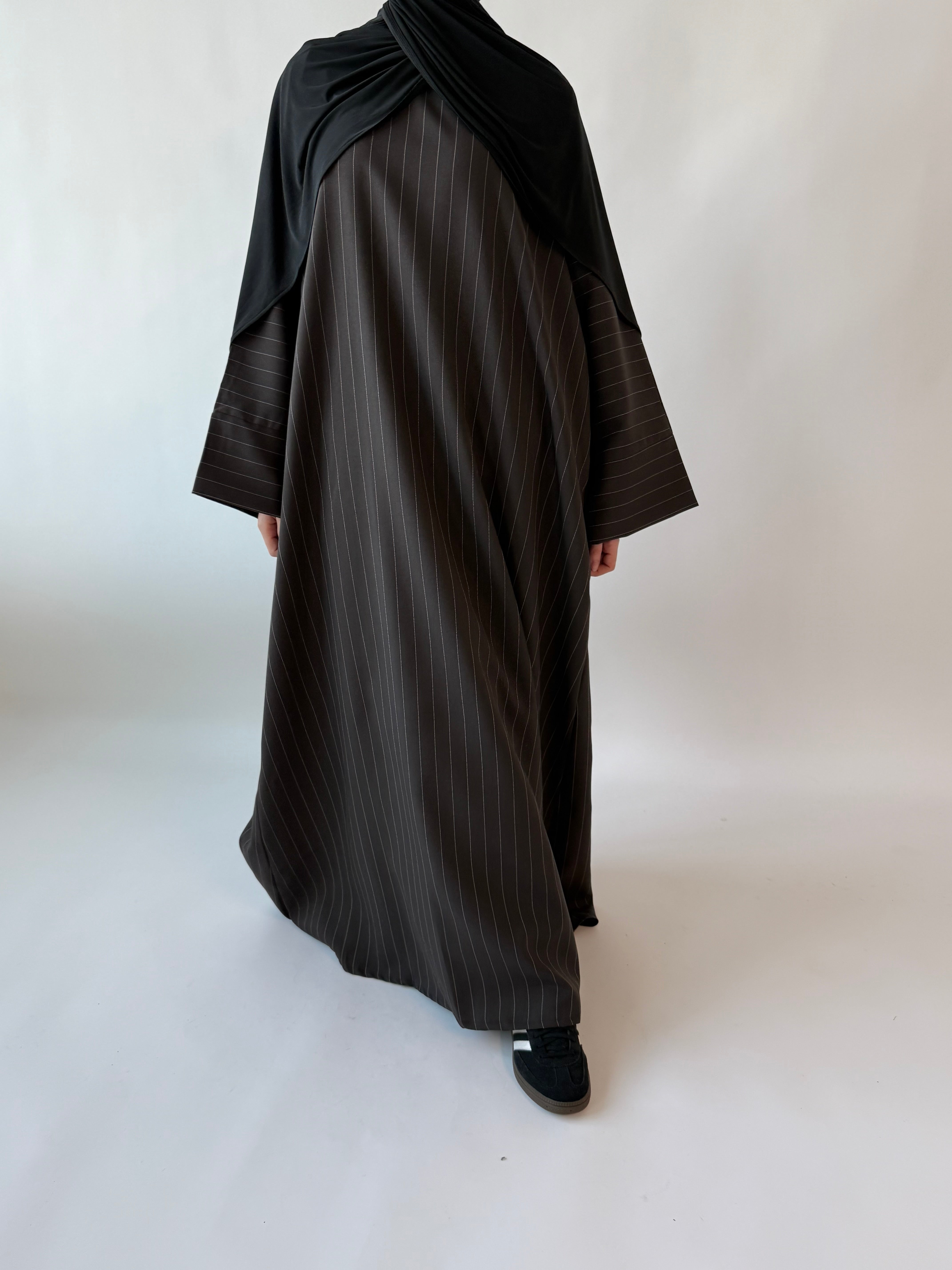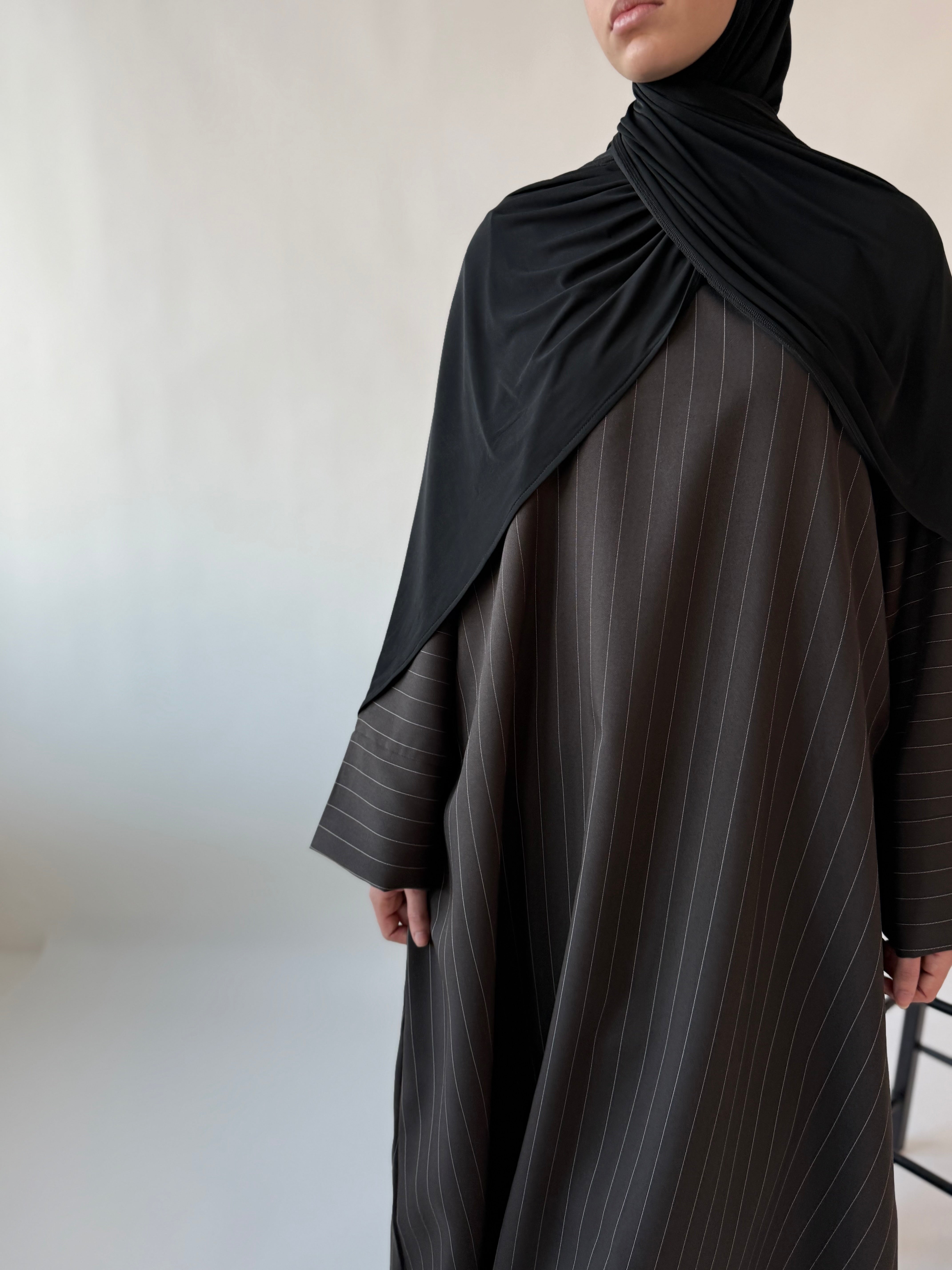 Our Walnut Stripe abayah offers sophistication and style when you dress the winter. Its pinstripe pattern provides a perfect outfit not only for work and office use, but also great for occasions.