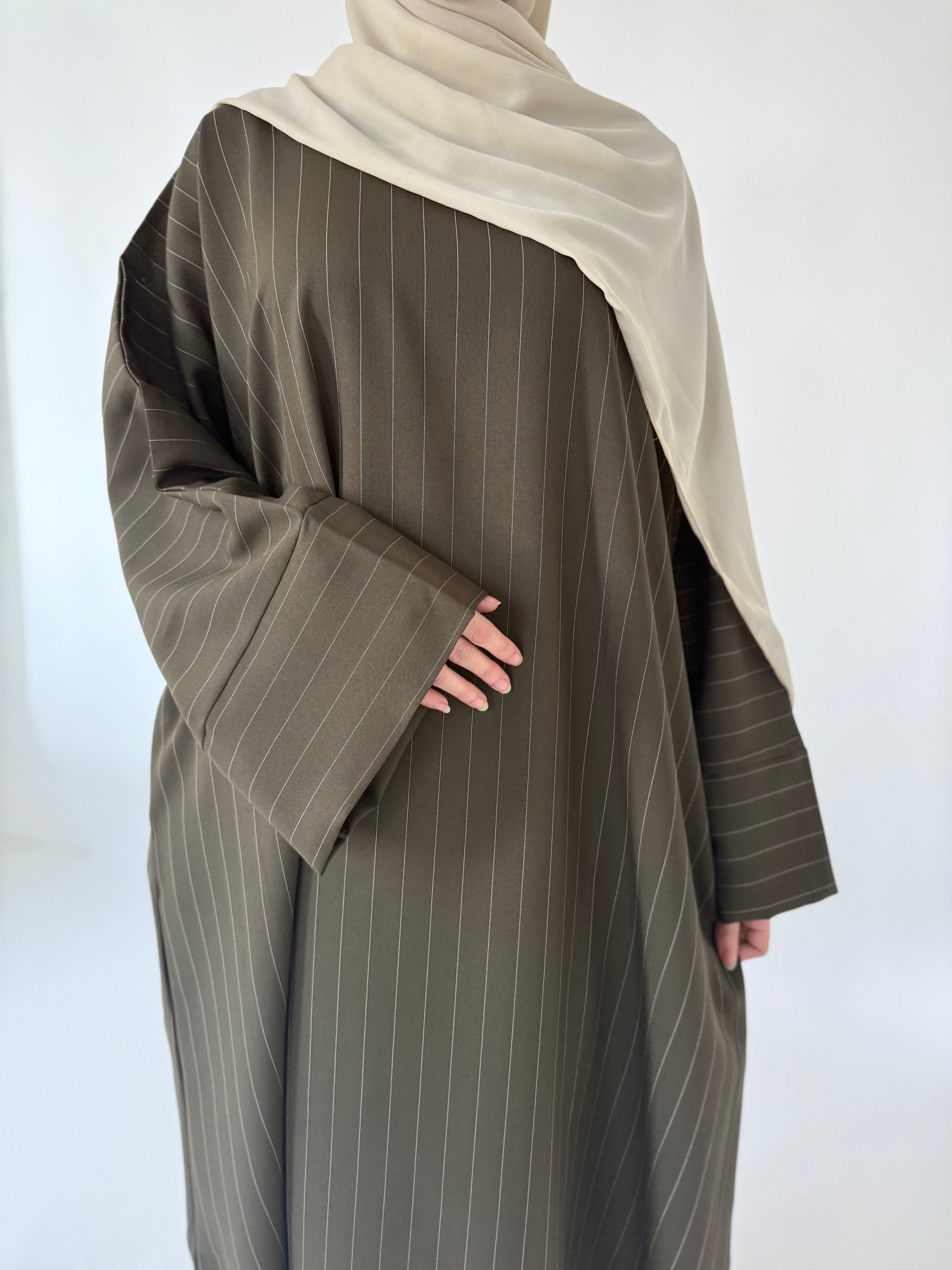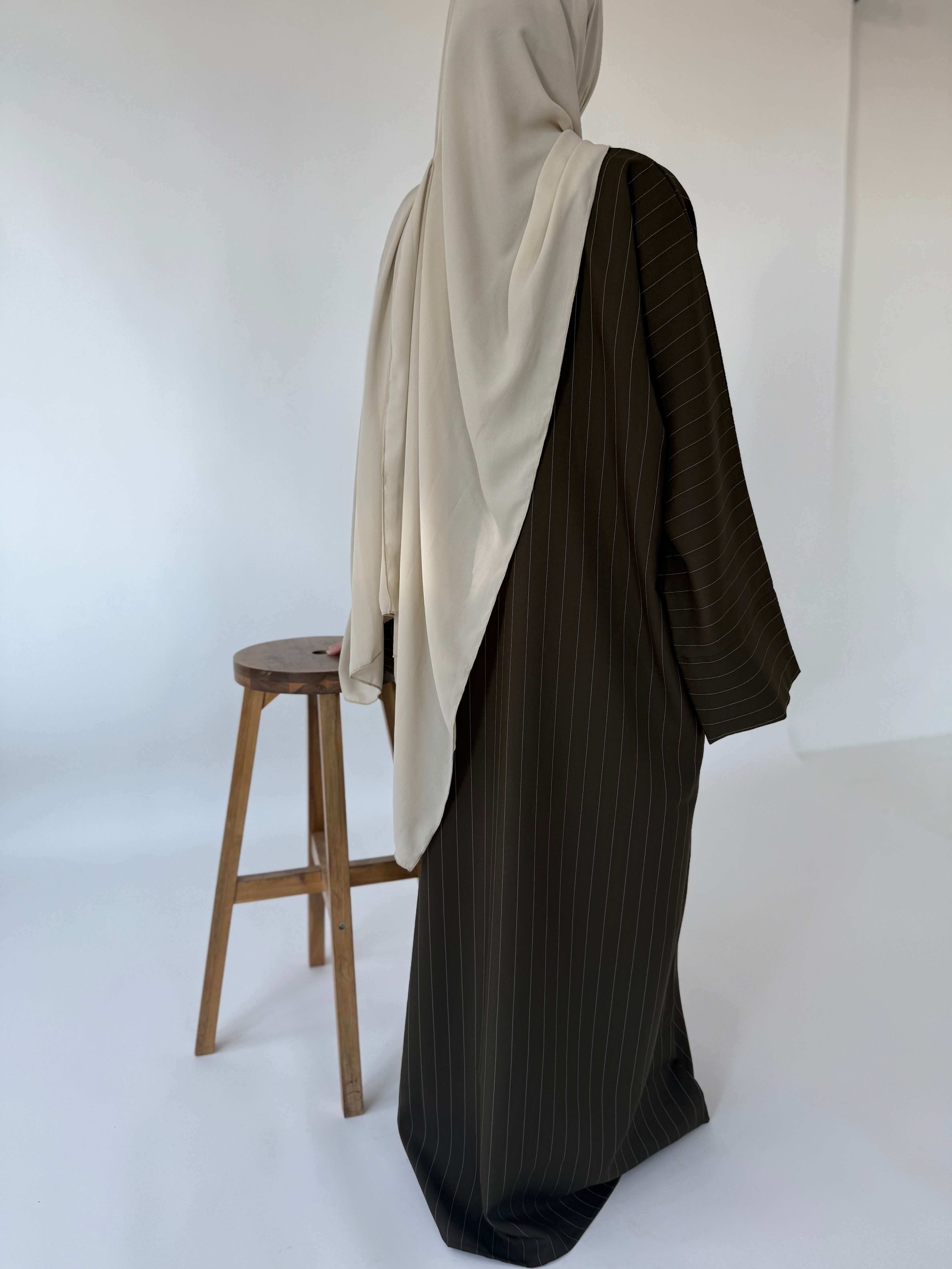 Our Walnut Stripe abayah offers sophistication and style when you dress the winter. Its pinstripe pattern provides a perfect outfit not only for work and office use, but also great for occasions.