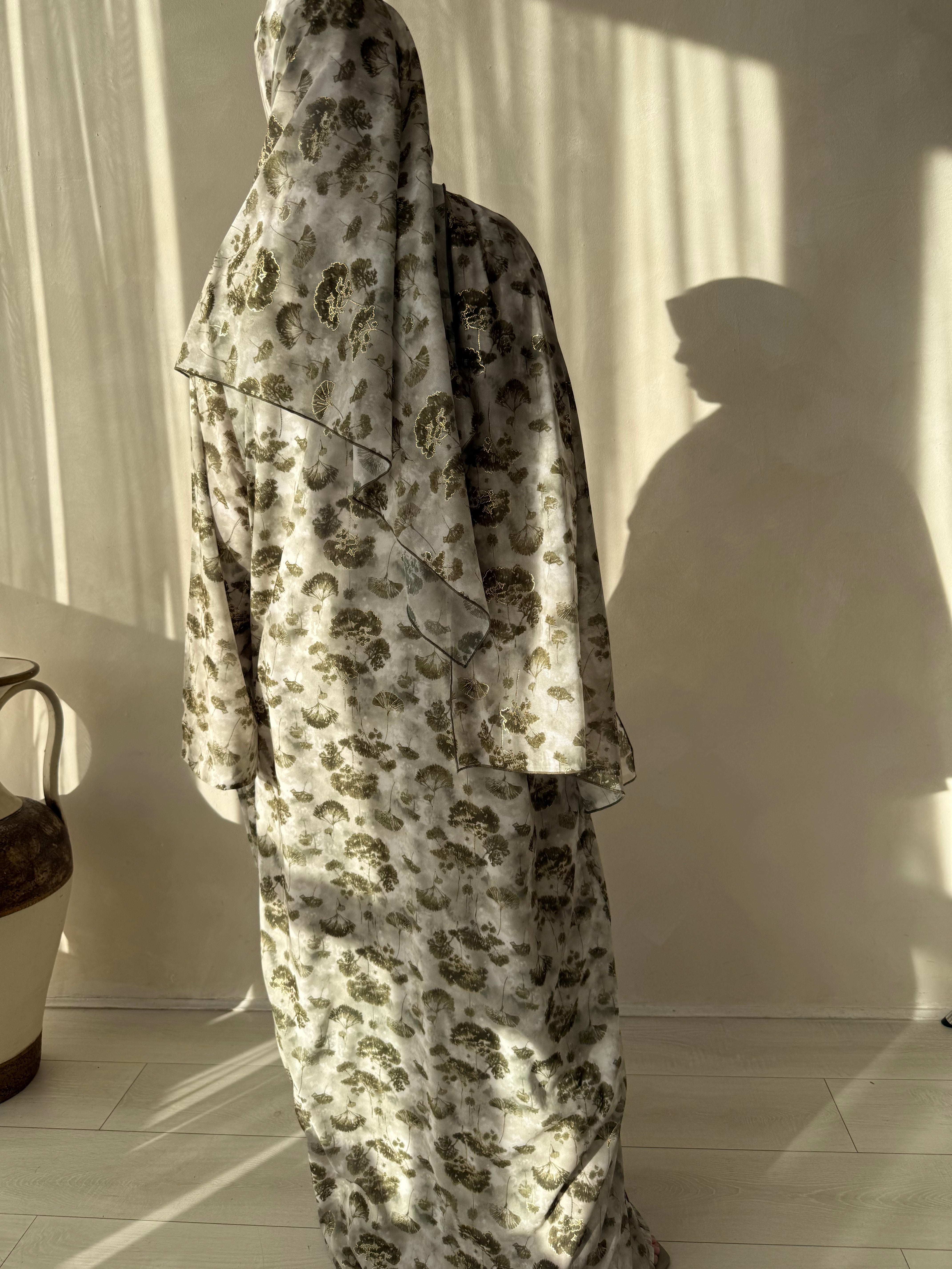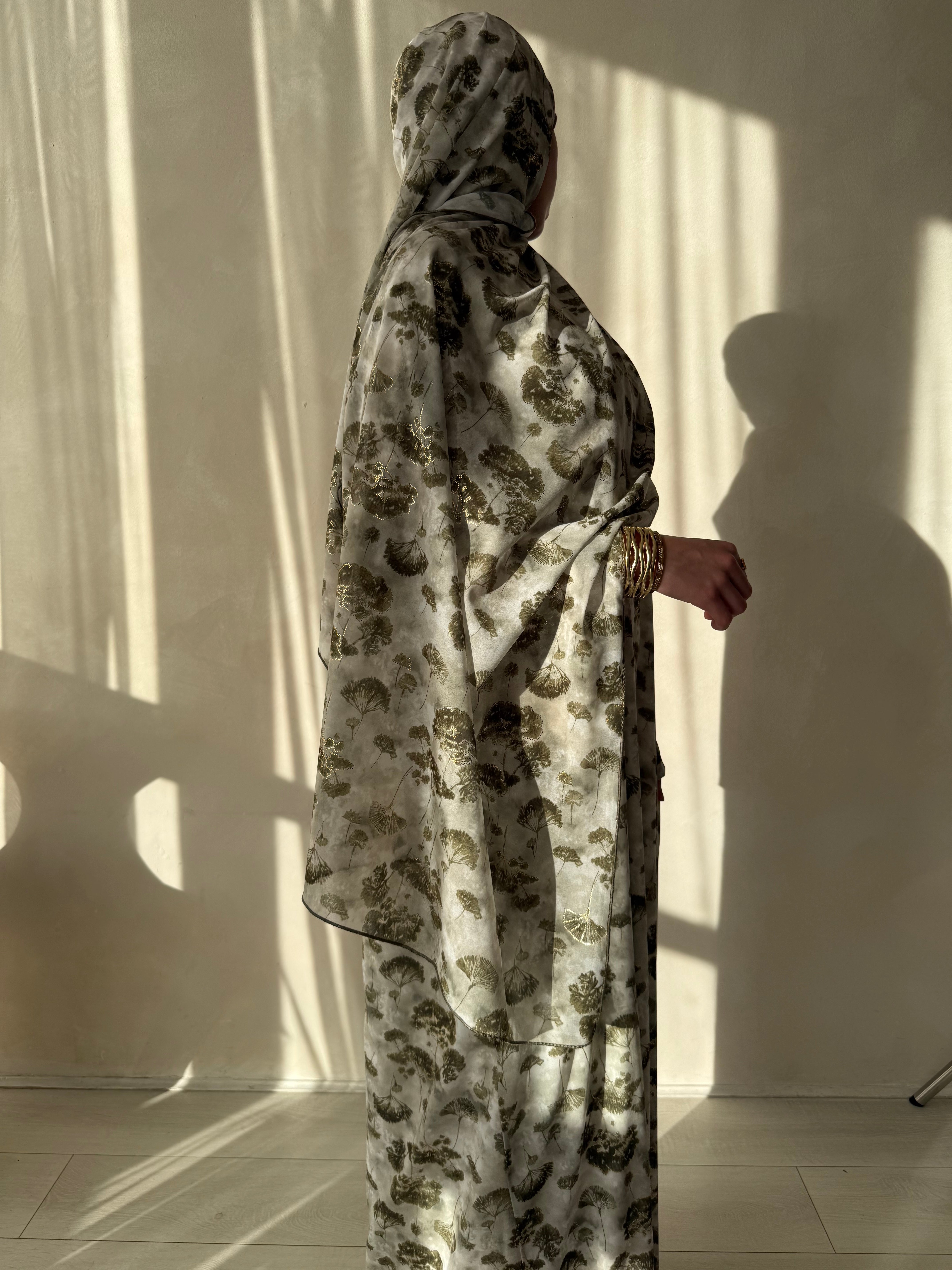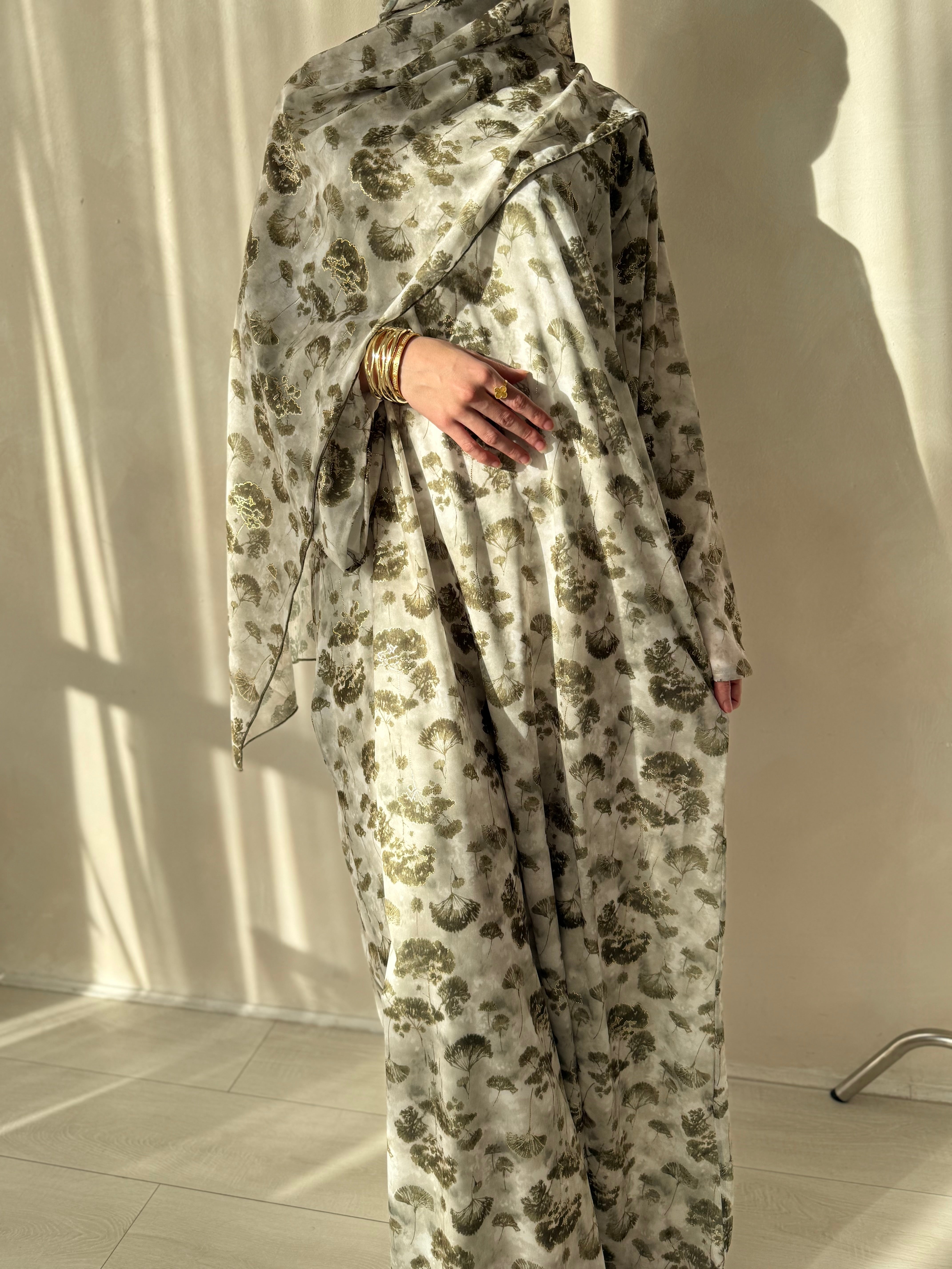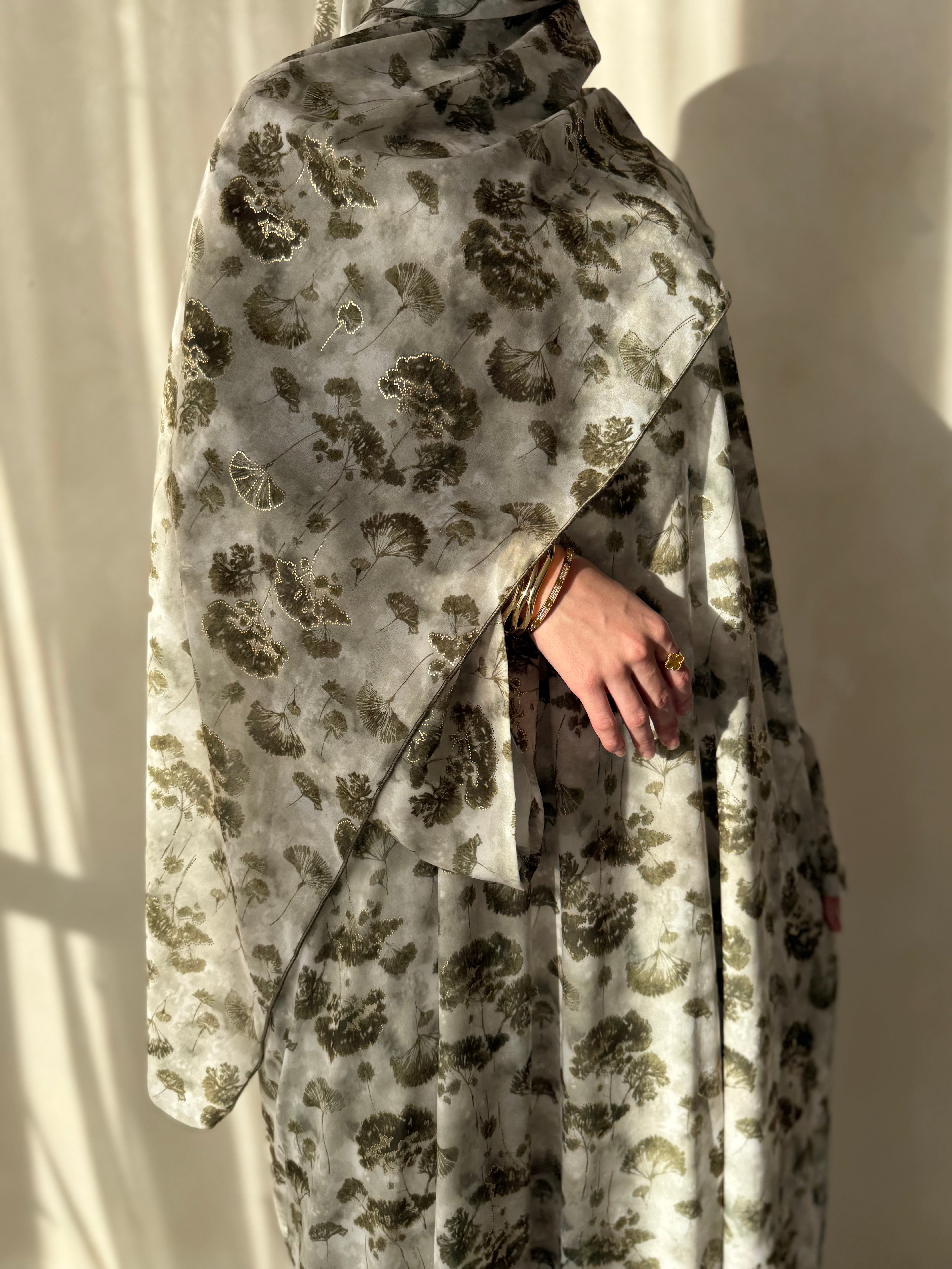 This Eid feel like a princess and embrace Eid with this stylish set made with wide sleeves, luxurious printed abayah and matching hijaab made to cover you modestly!
