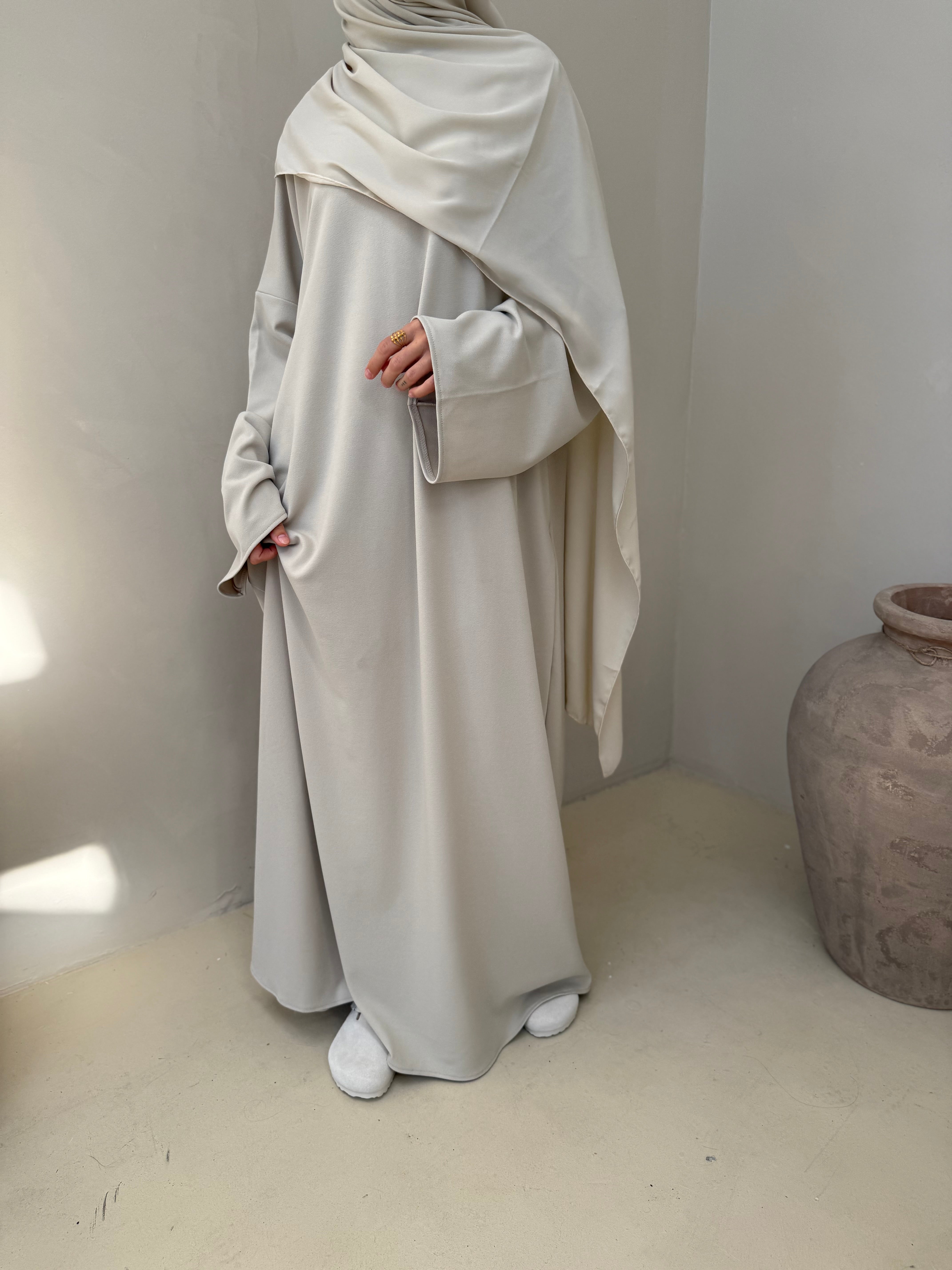 Our Stone Jumper abayah is not only stylish, but offers ultimate quality and comfort. This abayah speaks for itself with its beautiful stone shade- a truly aesthetically pleasing shade! Perfect for our studying girlies or for those everyday comfy runs!