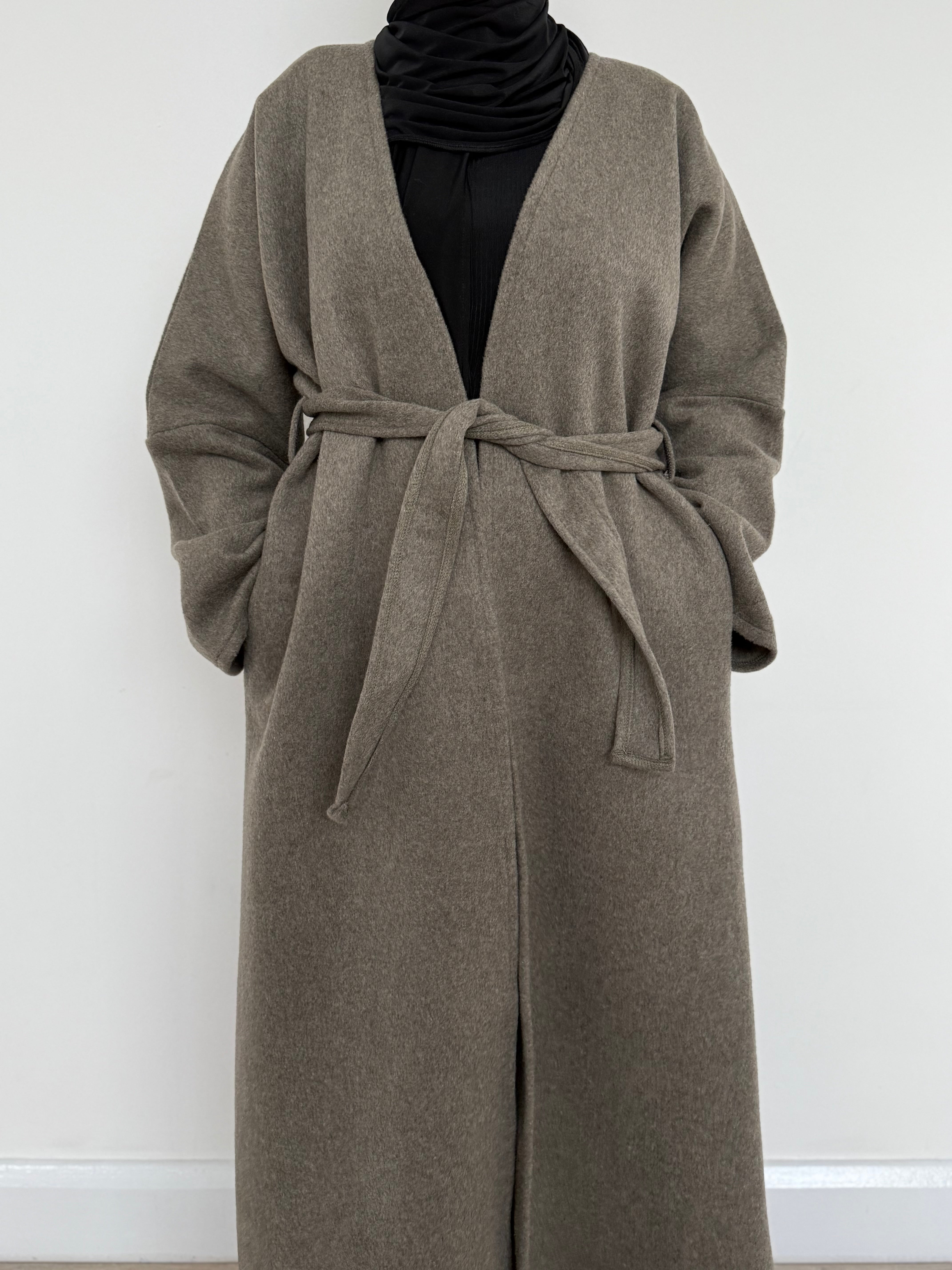 Our thick Wool abayah coats are the perfect wear to ensure you are looking your best and warmest for the colder seasons. Designed to give you warm without compromising style. Made with an oversized fit and belt loops, these Coat abayahs are made for practicality and style!